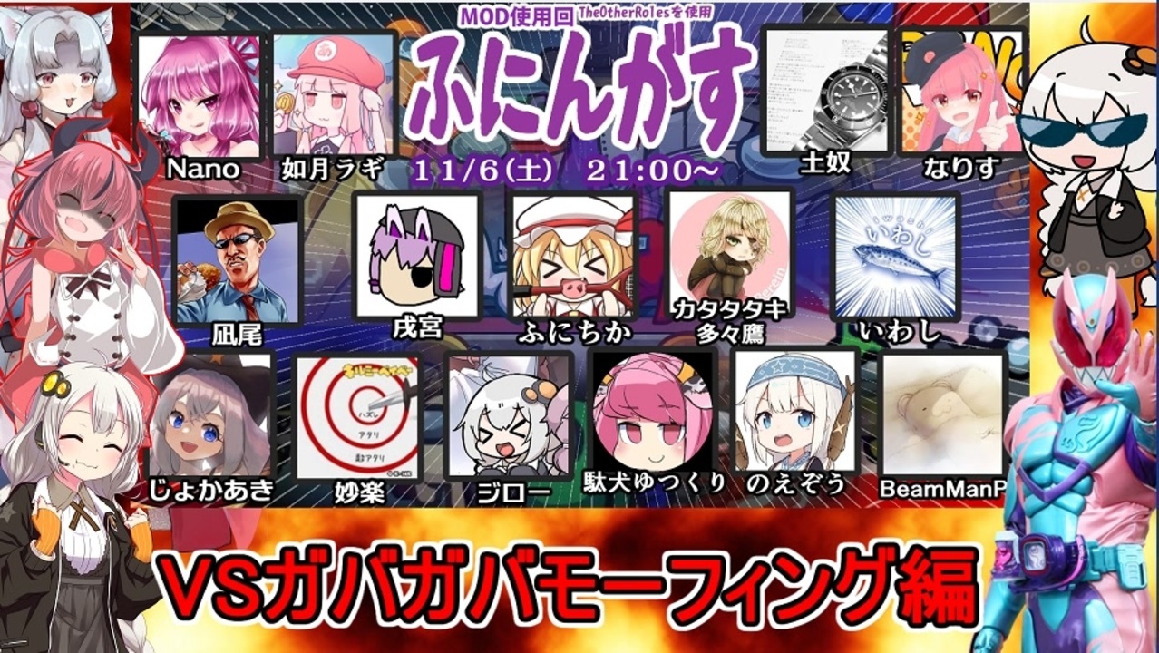 11月6日「ふにんがす」メイン+他の日の参加分です<br>モーフィングがようやく活躍する!?<br><br>琴葉姉妹立ち絵公開しました<br><a href="https://seiga.nicovideo.jp/seiga/im10803182" target="_blank" rel="noopener nofollow">https://seiga.nicovideo.jp/seiga/im10803182</a><br><br>参加者一覧(敬称略)<br>戌宮→<a href="https://www.nicovideo.jp/user/30627096" target="_blank" rel="noopener">user/30627096</a><br>いわし→<a href="https://www.nicovideo.jp/user/15086302" target="_blank" rel="noopener">user/15086302</a><br>カタタタキ多々鷹→<a href="https://www.nicovideo.jp/user/63438200" target="_blank" rel="noopener">user/63438200</a><br>如月ラギ→<a href="https://www.nicovideo.jp/user/814203" target="_blank" rel="noopener">user/814203</a><br>じょかあき→<a href="https://www.nicovideo.jp/user/390917" target="_blank" rel="noopener">user/390917</a><br>ジロー→<a href="https://www.nicovideo.jp/user/12009913" target="_blank" rel="noopener">user/12009913</a><br>駄犬ゆつくり→<a href="https://www.nicovideo.jp/user/5299668" target="_blank" rel="noopener">user/5299668</a><br>土奴→<a href="https://www.nicovideo.jp/user/32122304" target="_blank" rel="noopener">user/32122304</a><br>凪尾→<a href="https://www.nicovideo.jp/user/2620730" target="_blank" rel="noopener">user/2620730</a><br>Nano→<a href="https://www.nicovideo.jp/user/21297144" target="_blank" rel="noopener">user/21297144</a><br>なりす→<a href="https://www.nicovideo.jp/user/28505319" target="_blank" rel="noopener">user/28505319</a><br>のえぞう→<a href="https://www.nicovideo.jp/user/13648411" target="_blank" rel="noopener">user/13648411</a><br>BeamManP→<a href="https://www.nicovideo.jp/user/421727" target="_blank" rel="noopener">user/421727</a><br>ふにちか→<a href="https://www.nicovideo.jp/user/1399358" target="_blank" rel="noopener">user/1399358</a><br>妙楽→<a href="https://www.nicovideo.jp/user/3097821" target="_blank" rel="noopener">user/3097821</a><br><br>楽曲提供<br>ぺんぺんさん<br><a href="https://www.nicovideo.jp/user/93911302" target="_blank" rel="noopener nofollow">https://www.nicovideo.jp/user/93911302</a><br><br>凪尾立ち絵提供<br>高萩先生<br><a href="https://twitter.com/takahagi_k" target="_blank" rel="noopener nofollow">https://twitter.com/takahagi_k</a><br><br>YouTube高画質版<br><a href="https://youtu.be/HgJA7E_8-yc" target="_blank" rel="noopener nofollow">https://youtu.be/HgJA7E_8-yc</a><br><br>ふにんがす動画マイリスト<br><a href="https://www.nicovideo.jp/mylist/71314393" target="_blank" rel="noopener">mylist/71314393</a><br><br>次回 Part10 鬼ごっこ編<br><a href="https://www.nicovideo.jp/watch/sm39636477" class="watch">sm39636477</a><br><br>前回 Part8 VS革命軍編<br><a href="https://www.nicovideo.jp/watch/sm39531769" class="watch">sm39531769</a><br><br>Part1 <br><a href="https://www.nicovideo.jp/watch/sm38982979" target="_blank" rel="noopener nofollow">https://www.nicovideo.jp/watch/sm38982979</a> <br />ふにんがす動画マイリスト <a href="https://www.nicovideo.jp/mylist/71314393" target="_blank" rel="noopener">mylist/71314393</a><br>GTA5手配度MAXシリーズ <a href="https://www.nicovideo.jp/mylist/18374381" target="_blank" rel="noopener">mylist/18374381</a><br><br>【凪尾マイクラ等サーバー参加方法】<br>ニコニコ凪尾チャンネル・クリエイターサポート加入者・NicoFTパス所持者 YouTubeメンバーシップゴールド以上の方々が参加できます! 分からないことがあったら気軽に質問してください!<br>ニコニコチャンネル<br><a href="https://ch.nicovideo.jp/nagio-gta?ref=pc_mypage_top" target="_blank" rel="noopener nofollow">https://ch.nicovideo.jp/nagio-gta?ref=pc_mypage_top</a><br>※会員限定動画はニコニコチャンネル加入者・YouTubeメンバーシップノーマル以上から視聴できます。<br><br>■超会議2025グッズ通販(pixivBooth)<br><a href="https://nagio-gta25252.booth.pm/" target="_blank" rel="noopener nofollow">https://nagio-gta25252.booth.pm/</a><br>■ずんだもん立ち絵公開しました<br><a href="http://nico.ms/im10892141" target="_blank" rel="noopener nofollow">http://nico.ms/im10892141</a><br>■琴葉姉妹立ち絵公開しました<br><a href="https://seiga.nicovideo.jp/seiga/im10803182" target="_blank" rel="noopener nofollow">https://seiga.nicovideo.jp/seiga/im10803182</a><br><br>楽曲提供:ぺんぺんさん:<a href="https://www.nicovideo.jp/user/93911302" target="_blank" rel="noopener">user/93911302</a><br>ふにちかさん作凪尾立ち絵:<a href="https://seiga.nicovideo.jp/seiga/im10956602?nicorepotwitter_upload_illust" target="_blank" rel="noopener nofollow">https://seiga.nicovideo.jp/seiga/im10956602?nicorepotwitter_upload_illust</a><br><br>▼以下配信活動ページ:よかったら登録してね!<br>ニコ生<br><a href="https://www.nicovideo.jp/user/2620730/live_programs?ref=pc_userpage_menu" target="_blank" rel="noopener nofollow">https://www.nicovideo.jp/user/2620730/live_programs?ref=pc_userpage_menu</a><br>YouTubeiS4mQ7q8w?sub_confirmation=1<br>Twitch:<a href="https://www.twitch.tv/nagiogames" target="_blank" rel="noopener nofollow">https://www.twitch.tv/nagiogames</a><br>ツイキャス:<a href="https://twitcasting.tv/g:106250988999788152314" target="_blank" rel="noopener nofollow">https://twitcasting.tv/g:106250988999788152314</a><br><br>VOICEVOX:ずんだもん VOICEVOX:九州そら