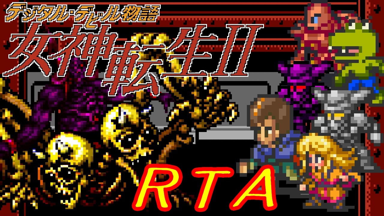 「RTA in biim Winter」に出るため、練習していたら記録を塗り替えました。<br>ただ、もうその記録すら無慈悲されました(奮起)<br>編集時間4日。あのゲームの再現をしたらせわしなかった。<br><br>RTA in biim Winter公式HP → <a href="https://www.rtainbiim.cyou/2021-winter/" target="_blank" rel="noopener nofollow">https://www.rtainbiim.cyou/2021-winter/</a><br>偽典ピロリ集 → <a href="https://drive.google.com/drive/folders/1-yTQOUMA1PDe5etFNlN1UzIFwHvYWqz5?usp=sharing" target="_blank" rel="noopener nofollow">https://drive.google.com/drive/folders/1-yTQOUMA1PDe5etFNlN1UzIFwHvYWqz5?usp=sharing</a><br><br>マンモン討伐~バエル撃破まで<br>前→<a href="https://www.nicovideo.jp/watch/sm39720142" class="watch">sm39720142</a> 次→<a href="https://www.nicovideo.jp/watch/sm39791384" class="watch">sm39791384</a><br><br>【レギュ】<br> ・オートパイロットエンカ封じ禁止<br> ・他の裏技OK<br> ※つまり「RTA in biim Winter」ルール<br><br>【計測区間】<br> START選択時~ENDの魔法陣が消えるまで<br> ※先駆者様と計測点が若干違います。<br><br><span style="color: #000000;">【プレイ環境】<br>・ニューファミコン<br>・Ⅰコン:ハドソンジョイパッド</span><br>・Ⅱコン:ニューファミコンコントローラー<br>・電池が切れたDDS女神転生2のカセット<br><br><span style="color: #000000;">【投稿動画】<br>RTAパート1臭 :</span><span style="color: #006699;"><a href="https://www.nicovideo.jp/mylist/62538725" target="_blank" rel="noopener">mylist/62538725</a></span><br><span style="color: #000000;"> DQ2:</span><span style="color: #006699;"><a href="https://www.nicovideo.jp/mylist/60368302" target="_blank" rel="noopener">mylist/60368302</a></span><br><span style="color: #000000;">星をみるひと :</span><span style="color: #006699;"><a href="https://www.nicovideo.jp/mylist/62518829" target="_blank" rel="noopener">mylist/62518829</a></span><br>ゲーム解析倶楽部:<a href="https://www.nicovideo.jp/series/165053" target="_blank" rel="noopener">series/165053</a><br><br><span style="color: #000000;">【Twitter】<br>s8fp98fd5k<br>※糞みたいなことしか言わないけど、気軽にフォローしてください。</span>