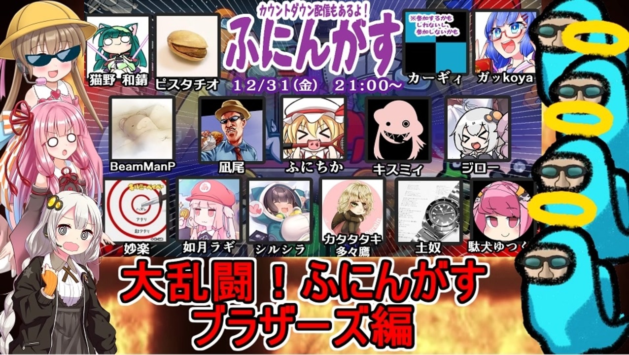 今回はキスミィさん考案の全員がキル能力を持って生き残りをかけた戦いを繰り広げる回を動画にしました<br><br>※サムネメンバー画像を間違えていましたが、1月12日の回でした<br><br>ふにんがす動画マイリスト<br><a href="https://www.nicovideo.jp/mylist/71314393" target="_blank" rel="noopener">mylist/71314393</a><br><br>YouTube高画質版<br><a href="https://youtu.be/fqmRBdAbJz8" target="_blank" rel="noopener nofollow">https://youtu.be/fqmRBdAbJz8</a><br><br>次回 なのそん2 悪徳弁護士編<br><a href="https://www.nicovideo.jp/watch/sm39948440" class="watch">sm39948440</a><br><br>前回 不憫をばらまくペスト医師編<br><a href="https://www.nicovideo.jp/watch/sm39910525" class="watch">sm39910525</a><br><br>Part1 <br><a href="https://www.nicovideo.jp/watch/sm38982979" class="watch">sm38982979</a> <br><br>琴葉姉妹立ち絵公開しました<br><a href="https://seiga.nicovideo.jp/seiga/im10803182" target="_blank" rel="noopener nofollow">https://seiga.nicovideo.jp/seiga/im10803182</a><br><br>楽曲提供<br>ぺんぺんさん<br><a href="https://www.nicovideo.jp/user/93911302" target="_blank" rel="noopener">user/93911302</a><br><br>凪尾立ち絵提供<br>高萩先生<br><a href="https://twitter.com/takahagi_k" target="_blank" rel="noopener nofollow">https://twitter.com/takahagi_k</a><br><br>参加者一覧(敬称略)<br>いわし→<a href="https://www.nicovideo.jp/user/15086302" target="_blank" rel="noopener nofollow">https://www.nicovideo.jp/user/15086302</a><br>如月ラギ→<a href="https://www.nicovideo.jp/user/814203" target="_blank" rel="noopener nofollow">https://www.nicovideo.jp/user/814203</a><br>キスミィ→<a href="https://www.nicovideo.jp/user/27503822" target="_blank" rel="noopener nofollow">https://www.nicovideo.jp/user/27503822</a><br>たいたぬ→<a href="https://www.nicovideo.jp/user/41035256" target="_blank" rel="noopener nofollow">https://www.nicovideo.jp/user/41035256</a><br>土奴→<a href="https://www.nicovideo.jp/user/32122304" target="_blank" rel="noopener nofollow">https://www.nicovideo.jp/user/32122304</a><br>猫野和錆→<a href="https://www.nicovideo.jp/user/526751" target="_blank" rel="noopener nofollow">https://www.nicovideo.jp/user/526751</a><br>のえぞう→<a href="https://www.nicovideo.jp/user/13648411" target="_blank" rel="noopener nofollow">https://www.nicovideo.jp/user/13648411</a><br>ピスタチオ→<a href="https://www.nicovideo.jp/user/53716331" target="_blank" rel="noopener nofollow">https://www.nicovideo.jp/user/53716331</a><br>ピロ彦→<a href="https://www.nicovideo.jp/user/37189" target="_blank" rel="noopener nofollow">https://www.nicovideo.jp/user/37189</a><br>ふにちか→<a href="https://www.nicovideo.jp/user/1399358" target="_blank" rel="noopener nofollow">https://www.nicovideo.jp/user/1399358</a><br>魔球→<a href="https://www.nicovideo.jp/user/963352" target="_blank" rel="noopener nofollow">https://www.nicovideo.jp/user/963352</a><br>妙楽→<a href="https://www.nicovideo.jp/user/3097821" target="_blank" rel="noopener nofollow">https://www.nicovideo.jp/user/3097821</a><br><br><br />ふにんがす動画マイリスト <a href="https://www.nicovideo.jp/mylist/71314393" target="_blank" rel="noopener">mylist/71314393</a><br>GTA5手配度MAXシリーズ <a href="https://www.nicovideo.jp/mylist/18374381" target="_blank" rel="noopener">mylist/18374381</a><br><br>【凪尾マイクラ等サーバー参加方法】<br>ニコニコ凪尾チャンネル・クリエイターサポート加入者・NicoFTパス所持者 YouTubeメンバーシップゴールド以上の方々が参加できます! 分からないことがあったら気軽に質問してください!<br>ニコニコチャンネル<br><a href="https://ch.nicovideo.jp/nagio-gta?ref=pc_mypage_top" target="_blank" rel="noopener nofollow">https://ch.nicovideo.jp/nagio-gta?ref=pc_mypage_top</a><br>※会員限定動画はニコニコチャンネル加入者・YouTubeメンバーシップノーマル以上から視聴できます。<br><br>■超会議2025グッズ通販(pixivBooth)<br><a href="https://nagio-gta25252.booth.pm/" target="_blank" rel="noopener nofollow">https://nagio-gta25252.booth.pm/</a><br>■ずんだもん立ち絵公開しました<br><a href="http://nico.ms/im10892141" target="_blank" rel="noopener nofollow">http://nico.ms/im10892141</a><br>■琴葉姉妹立ち絵公開しました<br><a href="https://seiga.nicovideo.jp/seiga/im10803182" target="_blank" rel="noopener nofollow">https://seiga.nicovideo.jp/seiga/im10803182</a><br><br>楽曲提供:ぺんぺんさん:<a href="https://www.nicovideo.jp/user/93911302" target="_blank" rel="noopener">user/93911302</a><br>ふにちかさん作凪尾立ち絵:<a href="https://seiga.nicovideo.jp/seiga/im10956602?nicorepotwitter_upload_illust" target="_blank" rel="noopener nofollow">https://seiga.nicovideo.jp/seiga/im10956602?nicorepotwitter_upload_illust</a><br><br>▼以下配信活動ページ:よかったら登録してね!<br>ニコ生<br><a href="https://www.nicovideo.jp/user/2620730/live_programs?ref=pc_userpage_menu" target="_blank" rel="noopener nofollow">https://www.nicovideo.jp/user/2620730/live_programs?ref=pc_userpage_menu</a><br>YouTubeiS4mQ7q8w?sub_confirmation=1<br>Twitch:<a href="https://www.twitch.tv/nagiogames" target="_blank" rel="noopener nofollow">https://www.twitch.tv/nagiogames</a><br>ツイキャス:<a href="https://twitcasting.tv/g:106250988999788152314" target="_blank" rel="noopener nofollow">https://twitcasting.tv/g:106250988999788152314</a><br><br>VOICEVOX:ずんだもん VOICEVOX:九州そら