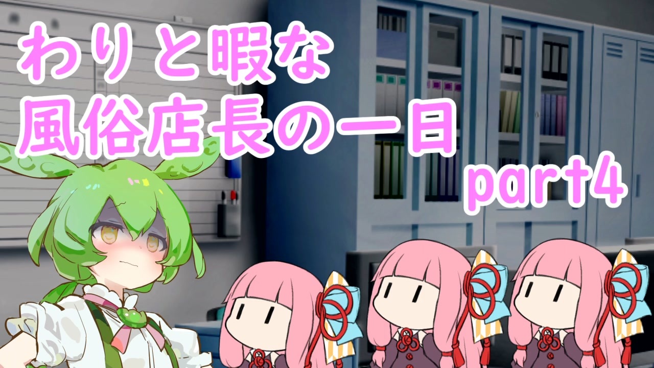 これは健全でわりと暇な零細ヘルス店長の一日の物語です。<br>今回は風俗店にある禁止事項がメインのお話になります。<br>ダークずんだもん店長と愉快なボイロたちのほのぼのとした日常風景・・・<br>最近あかねちゃんが怖いシーン多かったので今回は可愛い系にしました。<br>誤字がかなり多くてごめんなさい。<br>また、私の動画は全て何もかもフィクションです←<br>日を分けて寝ぼけながら作ったので雑編集で申し訳ございません