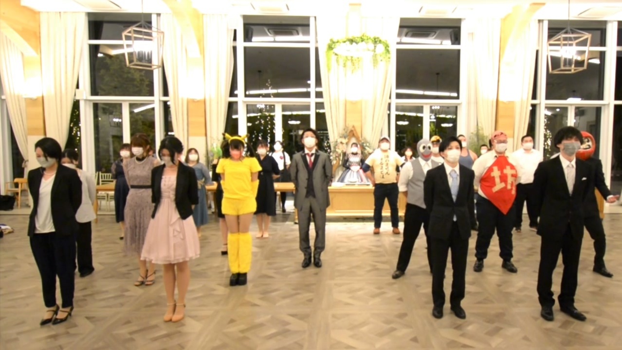 <span style="color: #ff00ff; font-size: 24px;"><strong>ハッピーシンセサイザ君の胸の奥まで<br>届くようなメロディ奏でるよ</strong></span><br><br>先に開催しました、じゃっくん&早乙女ちゃんのガチ結婚式の二次会でみんなにご協力いただいて、みんなでハッピーシンセサイザを踊りました!<br>この動画は「ニコニコ超会議2022」にて行われた募集企画「超合わせてみた」にも応募し採用されました!<br>私たちにとって一生に一度の晴れ舞台。<br>コロナ禍にもかかわらずたくさんのお祝いのお言葉を頂けたこと、今回のような滅多にない場でみんなで踊れたこと、一生残る素敵な思い出になりました!<br>コロナが落ち着いたら、またみんなで飲んだり騒いだり踊ったり、いっぱいいっぱいバカやろうぜ!<br><span style="color: #ff0000; font-size: 18px;"><strong>みんな大好きだーーー!!!</strong></span><br><br>使用音源:<a href="https://www.nicovideo.jp/watch/sm12825985" class="watch">sm12825985</a><br>振付参考:<a href="https://www.nicovideo.jp/watch/sm12926280" class="watch">sm12926280</a><br>Special Thanks:マリエール諏訪 様<br><br>ニコニコ超会議2022「超合わせてみた」:<a href="https://www.nicovideo.jp/watch/sm40390351" class="watch">sm40390351</a><br><br>YouTube:<a href="https://youtu.be/K-VzvZuUyRU" target="_blank" rel="noopener nofollow">https://youtu.be/K-VzvZuUyRU</a><br><br>※会場を始めご参加いただいたみなさんに多大なるご協力をいただきマスク着用や換気等、新型コロナウィルス感染症対策は万全の環境で撮影をしております。