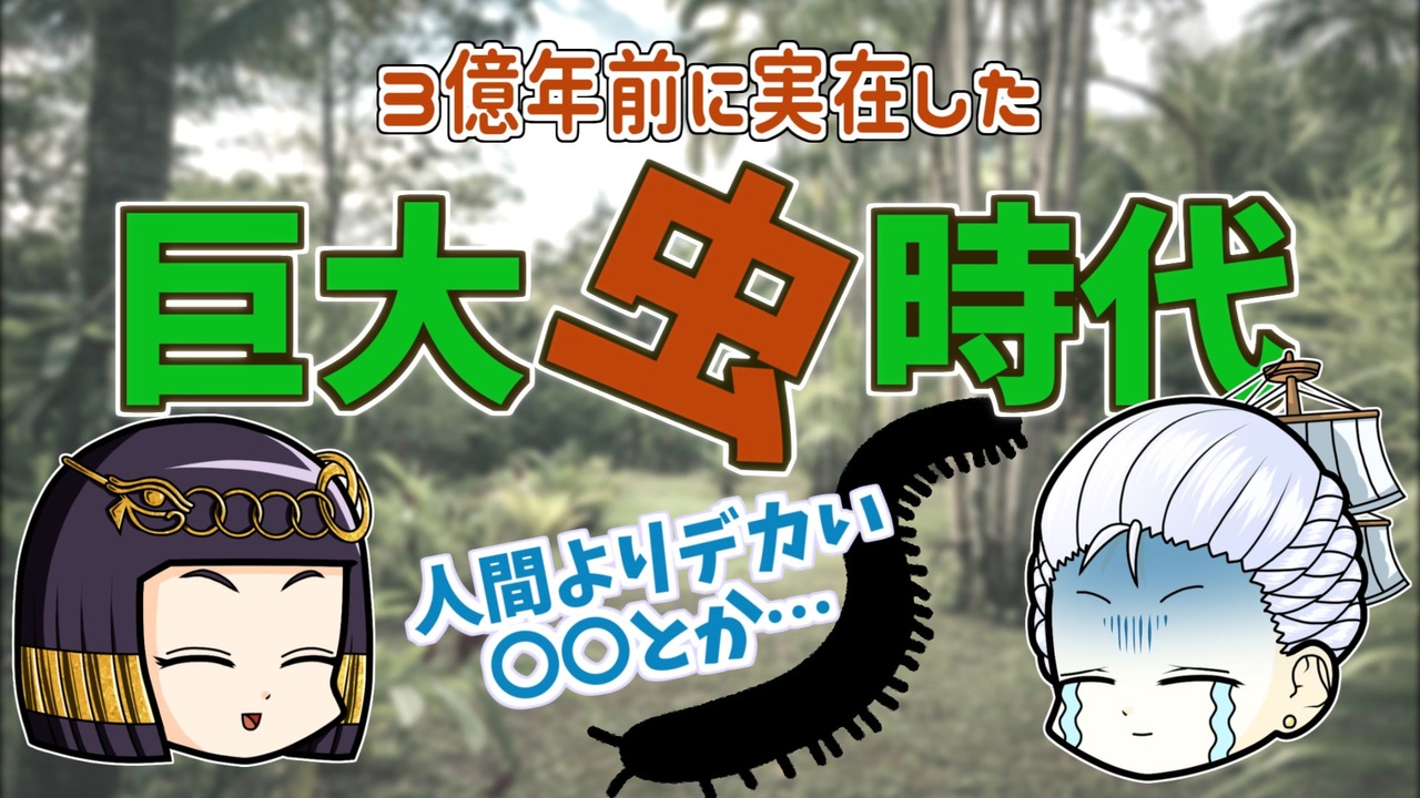 マリーちゃんは虫が苦手です。<br>巨大な虫たちが地球を支配した石炭紀のことを解説しましょう。<br><br>今回の参考文献:<br>高橋のぞむ(2021)『ゆるかわ古生物図鑑』西東社<br>他 Wikipediaとかいろいろ<br />━━━━━━━━━━━━━━━━━━━━━<br><br>この動画はクリエイティブ・コモンズ継承(CC-BY-SA)ライセンスの素材を使用して制作しています。(<a href="https://creativecommons.org/licenses/by-sa/4.0/)" target="_blank" rel="noopener nofollow">https://creativecommons.org/licenses/by-sa/4.0/)</a><br>規約に基づき、この動画もCC-BY-SA 4.0 のもとで公開します。<br><br>投稿者共通情報☆彡<br><br>BGM, SE:ニコニ・コモンズ様<br><a href="http://commons.nicovideo.jp/" target="_blank" rel="noopener nofollow">http://commons.nicovideo.jp/</a><br>魔王魂様<br><a href="https://maoudamashii.jokersounds.com/" target="_blank" rel="noopener nofollow">https://maoudamashii.jokersounds.com/</a><br>Audiostock様<br><a href="https://audiostock.jp/" target="_blank" rel="noopener nofollow">https://audiostock.jp/</a><br><br>立ち絵 霊夢・魔理沙(黒子式):nicotalk様<br><a href="http://www.nicotalk.com/charasozai.html" target="_blank" rel="noopener nofollow">http://www.nicotalk.com/charasozai.html</a><br><br>立ち絵 パトラ、マリー、アン、メアリ:ライフライフ様<br><a href="https://0801lifelife.tumblr.com/" target="_blank" rel="noopener nofollow">https://0801lifelife.tumblr.com/</a><br><br>使用ツール1:ゆっくりムービーメーカー4<br><a href="https://manjubox.net/ymm4/" target="_blank" rel="noopener nofollow">https://manjubox.net/ymm4/</a><br><br>使用ツール2:AviUtl<br><a href="http://spring-fragrance.mints.ne.jp/aviutl/" target="_blank" rel="noopener nofollow">http://spring-fragrance.mints.ne.jp/aviutl/</a><br><br>各時代の地図 : World History Maps & Timelines <br><a href="http://geacron.com/home-en/" target="_blank" rel="noopener nofollow">http://geacron.com/home-en/</a><br><br>ゆっくりボイスについて:AquesTalkライセンス取得済み<br><br>キャラクターボイス<br>アン・ボニー:羽ノ華(A.I.VOICE)<br>メアリ・リード:琴葉 葵(A.I.VOICE)<br>クレオパトラ:結月ゆかり(VOICEROID2)<br>マリー‐アントワネット:東北きりたん (VOICEROID EX)<br>その他キャラ:青山龍星(A.I.VOICE)、伊織弓鶴(A.I.VOICE2)、栗田まろん(A.I.VOICE)、宮舞モカ(VOICEPEAK)、フリモメン(VOICEPEAK)<br><br><br><br>その他フリー素材ご提供元の皆様に圧倒的感謝<br>