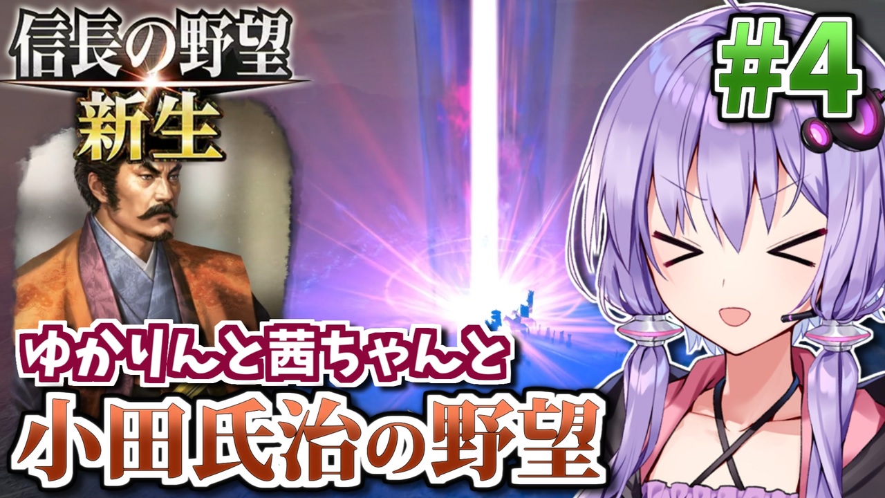 戦国時代が舞台の城取り戦略SLG「信長の野望・新生」を、軍師担当・結月ゆかりとうつけ担当・琴葉茜が小田家でプレイします。<br>未プレイの初心者向けの丁寧な解説を加えてるのでプレイ済みの方々はご了承ください。<br>第4話は台風襲来に加え北条家が再び襲来!反転攻勢の鍵となるゆかりさんが仕掛けた罠とは…?<br><br>前 : (<a href="https://www.nicovideo.jp/watch/sm41093019" class="watch">sm41093019</a>) <-> 次 : (<a href="https://www.nicovideo.jp/watch/sm41159330" class="watch">sm41159330</a>)<br>このシリーズのリンク: <a href="https://www.nicovideo.jp/series/353641" target="_blank" rel="noopener">series/353641</a><br><br>■ プレイ環境: 信長の野望・新生 Steam版 (Ver1.0.4)<br>■ プレイ設定: <br> 難易度 上級 (チュートリアルなし)・歴史イベントあり 寿命: 史実<br> シナリオ 1553年・尾張統一シナリオ 小田家<br> 縛り: 他家への臣従縛り<br><br>著作権表示: ©コーエーテクモゲームス<br />HoI4プレイ講座 → (<a href="https://www.nicovideo.jp/mylist/62136132" target="_blank" rel="noopener">mylist/62136132</a>)<br>EU4プレイ講座→(<a href="https://www.nicovideo.jp/mylist/61049948" target="_blank" rel="noopener">mylist/61049948</a>)<br>CK3プレイ講座→(<a href="https://www.nicovideo.jp/series/191974" target="_blank" rel="noopener">series/191974</a>)<br>Stellarisプレイ講座→(<a href="https://www.nicovideo.jp/series/263583" target="_blank" rel="noopener">series/263583</a>)<br>Vic3プレイ講座→(<a href="https://www.nicovideo.jp/series/364690" target="_blank" rel="noopener">series/364690</a>)<br>赤いシムシティ実況動画 → (<a href="https://www.nicovideo.jp/series/8074" target="_blank" rel="noopener">series/8074</a>)<br>太閤立志伝5 DX実況動画→ (<a href="https://www.nicovideo.jp/series/323444" target="_blank" rel="noopener">series/323444</a>)<br>信長の野望 小田家プレイ動画 → (<a href="https://www.nicovideo.jp/series/353641" target="_blank" rel="noopener">series/353641</a>)<br>紲星あかりF1参戦記→(<a href="https://www.nicovideo.jp/series/222744" target="_blank" rel="noopener">series/222744</a>)<br>あかねとあかりのソビエト国境警備隊!→ (<a href="https://www.nicovideo.jp/series/394983" target="_blank" rel="noopener">series/394983</a>)<br>Cities: Skylines2都市開発プレイ動画 → (<a href="https://www.nicovideo.jp/series/436779" target="_blank" rel="noopener">series/436779</a>)<br>Manor Lords村作りプレイ動画 → (<a href="https://www.nicovideo.jp/series/468306" target="_blank" rel="noopener">series/468306</a>)<br>全動画投稿リスト (<a href="https://www.nicovideo.jp/user/77964272" target="_blank" rel="noopener">user/77964272</a>)