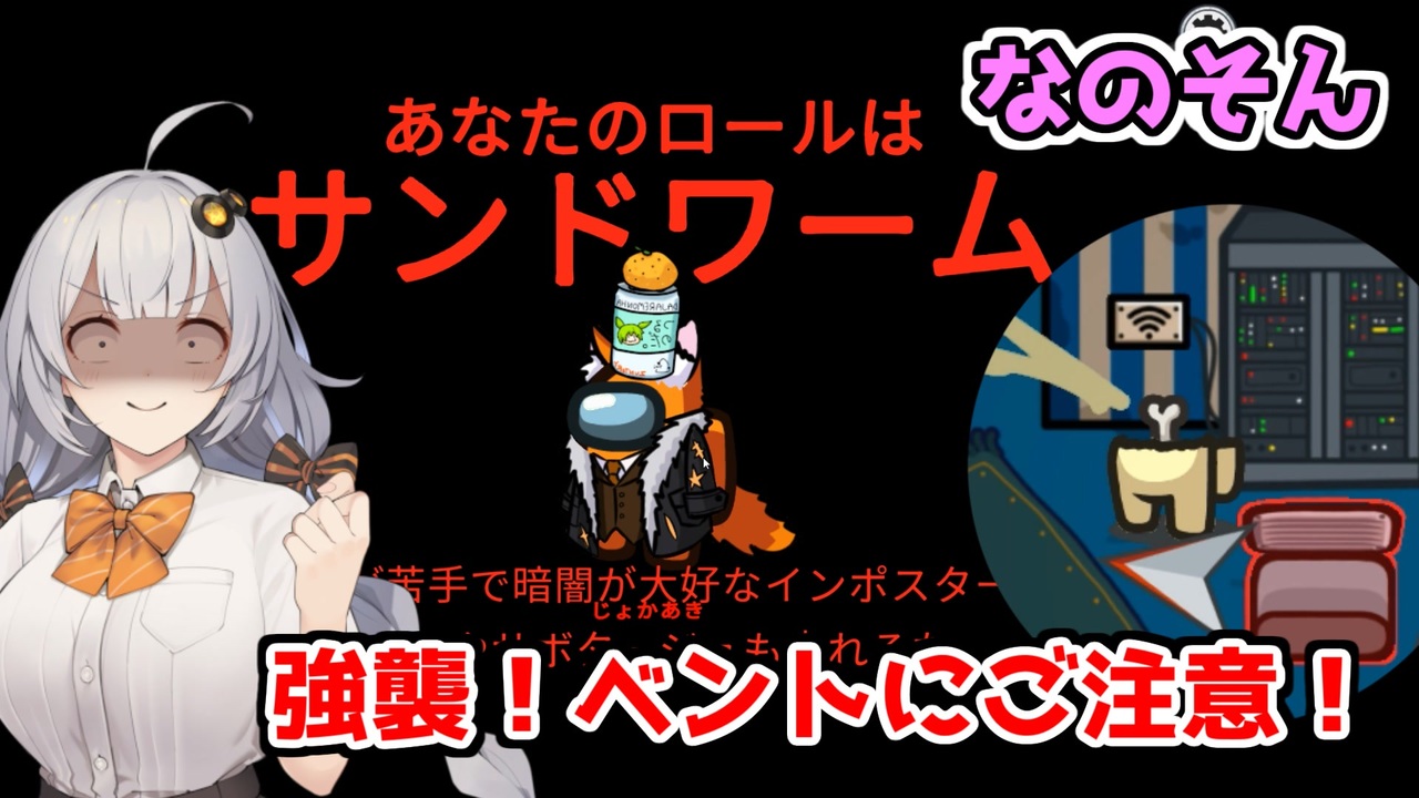 大好きなインポスター役職「サンドワーム」<br><br>前回:<a href="https://www.nicovideo.jp/watch/sm41148282" class="watch">sm41148282</a>(ふにん/がす)<br>次回:完成次第UPします<br><br>マイリスト:<a href="https://www.nicovideo.jp/mylist/71156364" target="_blank" rel="noopener">mylist/71156364</a><br><br><素材について><br>コンテンツツリー及び説明文にリンクがない素材は<br>投稿者の方に直接お借りさせて頂いております。<br><br><span style="color: #ff0000; font-size: 18px;"><strong>頂いた支援絵をニコニコ静画にてリスト化させて頂きました!</strong></span><br><支援絵リスト><br>[なの/そん] <a href="https://seiga.nicovideo.jp/clip/3320660" target="_blank" rel="noopener">clip/3320660</a><br>[ふにん/がす] <a href="https://seiga.nicovideo.jp/clip/3320659" target="_blank" rel="noopener">clip/3320659</a><br>[胡狼あき] <a href="https://seiga.nicovideo.jp/clip/3347791" target="_blank" rel="noopener">clip/3347791</a><br><br><br><うぷ主のその他動画><br>part1集:<a href="https://www.nicovideo.jp/mylist/65085257" target="_blank" rel="noopener">mylist/65085257</a><br>歌うボイロ:<a href="https://www.nicovideo.jp/mylist/64888782" target="_blank" rel="noopener">mylist/64888782</a><br>単発動画:<a href="https://www.nicovideo.jp/mylist/64596231" target="_blank" rel="noopener">mylist/64596231</a><br><br>Twitter:<a href="https://twitter.com/jokaaki" target="_blank" rel="noopener nofollow">https://twitter.com/jokaaki</a><br><br>youtubeでも投稿してます:<a href="https://www.youtube.com/channel/UCxrooQAj_jglNzkg519HJnA" target="_blank" rel="noopener nofollow">https://www.youtube.com/channel/UCxrooQAj_jglNzkg519HJnA</a><br>