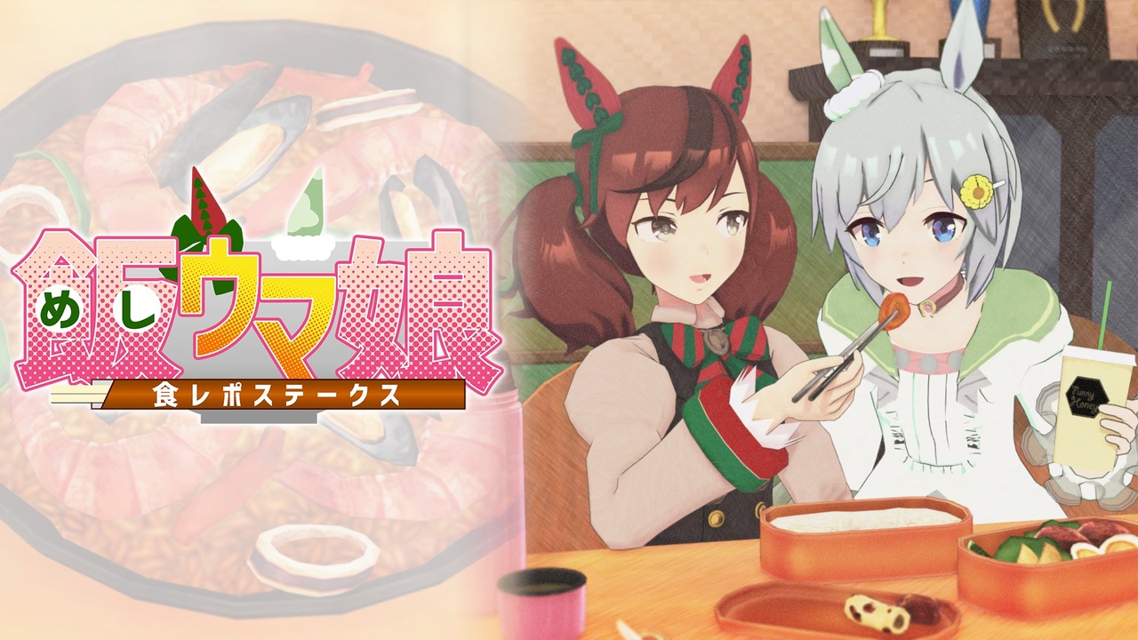 <span style="color: #ff0000; font-size: 18px;"><strong>人は、美味いから笑うのか?否。笑うから美味いのだ!</strong></span><br><span style="color: #ff0000; font-size: 24px;"><strong>「開戦!パエリア優駿」</strong></span><br><strong>製作期間、半年。ベホイミProjectの全力!</strong><br>「艦食娘」「夜戦食堂」に続く飯テロMMDドラマ。<br>忙しい方はこだわりのOPだけでも見ていってください→<a href="#" class="seekTime" data-seekTime="1:09" onclick="seekNicoPlayer('#1:09'); return false;">#1:09</a><br><br><span style="color: #0000ff;"><strong><めしウマ娘-食レポステークス- </strong></span><span style="color: #0000ff;"><a href="https://www.nicovideo.jp/mylist/73971829" target="_blank" rel="noopener">mylist/73971829</a></span><span style="color: #0000ff;"><strong>></strong></span><br><span style="color: #ff0000;">前作(前日譚)→夜戦食堂「ナイスネイチャときりたんぽ鍋」<a href="https://www.nicovideo.jp/watch/sm41318234" class="watch">sm41318234</a></span><br><br><strong>制作:ベホイミProject(<a href="https://www.nicovideo.jp/mylist/27336" target="_blank" rel="noopener">mylist/27336</a>)</strong><br><span style="color: #262626;">Twitter:</span><a href="https://twitter.com/BehoimiP" target="_blank" rel="noopener nofollow">https://twitter.com/BehoimiP</a><br>YouTube:<a href="https://www.youtube.com/channel/UCISpbK1sLOHkvBgZFJ76ZkA" target="_blank" rel="noopener nofollow">https://www.youtube.com/channel/UCISpbK1sLOHkvBgZFJ76ZkA</a><br>欲しい物:<a href="https://www.amazon.jp/hz/wishlist/ls/22MGTQ3BVV39B?ref_=wl_share" target="_blank" rel="noopener nofollow">https://www.amazon.jp/hz/wishlist/ls/22MGTQ3BVV39B?ref_=wl_share</a>