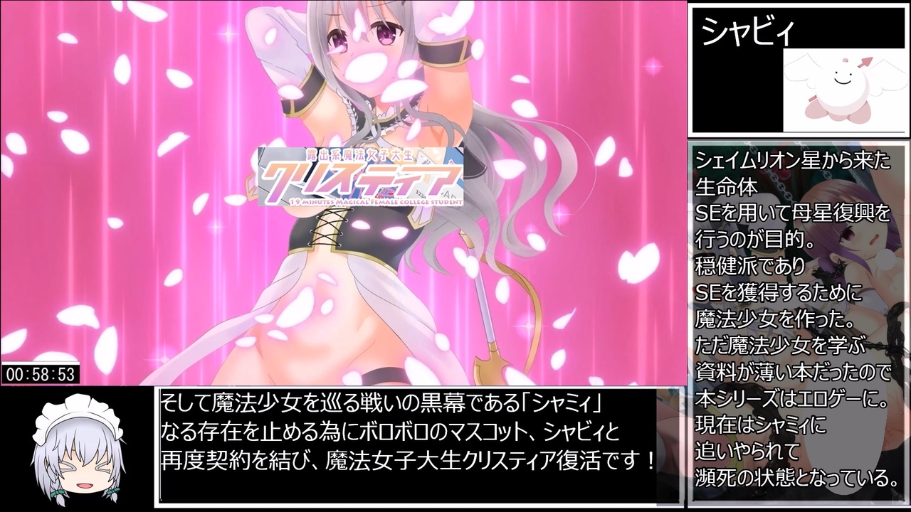 恥獄を見た、恥獄を見た、恥獄を見た。___いずれ辿る恥獄を見た。<br>一人の物語の終わり。交わる道と新たな物語の始まり。<br>つまり女の子たちが羞恥に悶える様は本当にシコれるのだ。<br><br><strong>【4H】</strong>様制作のR-18RPG<br><strong>【露出系魔法女子大生クリスティア】</strong><span style="font-size: 14px;">トゥルーエンド</span>RTAです。<br><br>レギュレーション<br>SE引継ぎなし<br>オープニングスキップなし<br>動画投稿許可済<br>計測開始:ニューゲームを選択した瞬間<br>計測終了:エンディングが流れた瞬間<br><br><a href="https://www.nicovideo.jp/watch/sm41606739" class="watch">sm41606739</a>←前 <br><br>パート1→<a href="https://www.nicovideo.jp/watch/sm41545665" class="watch">sm41545665</a><br><br>クリスティアRTAマイリスト→<a href="https://www.nicovideo.jp/mylist/74233330" target="_blank" rel="noopener">mylist/74233330</a><br><br>パート1と単発のマイリスト→<a href="https://www.nicovideo.jp/mylist/70659794" target="_blank" rel="noopener">mylist/70659794</a><br><br>いいね欄で次のRTA作品を紹介しています。<br><br>更新報告twitter:<a href="https://twitter.com/hihidowser" target="_blank" rel="noopener nofollow">https://twitter.com/hihidowser</a><br><br><br><br>スマホやタブレット等から見られない方はこちらの動画を参考にすると<br>見られるようになるはずです→ <a href="https://www.nicovideo.jp/watch/sm38575952" class="watch">sm38575952</a><br><br><br><br><strong>[露出系魔法少女シリーズ]の購入は下記サイトにて!<br>DLsite(PC)<br><br>作者様twitter:<a href="https://twitter.com/sitou44" target="_blank" rel="noopener nofollow">https://twitter.com/sitou44</a></strong><br>