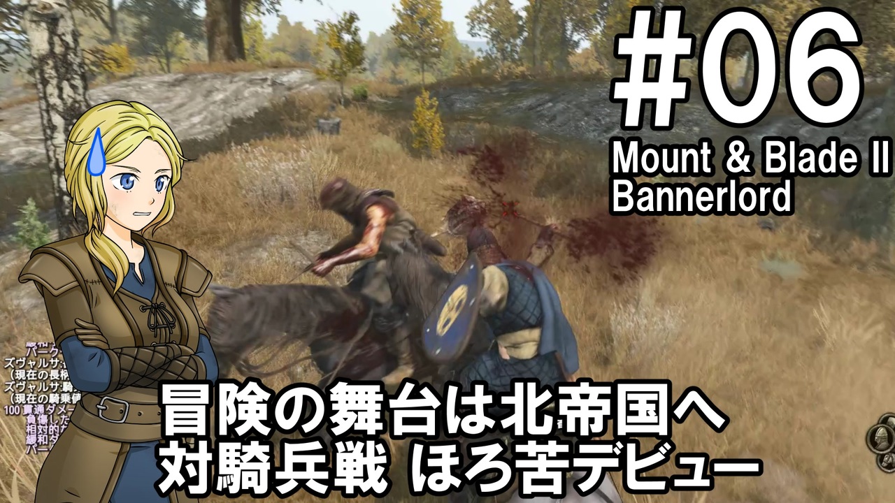騎士のお姉さんによるMount & Blade 2 Bannerlord実況動画です<br>舞台を北帝国に移し、騎馬部隊との初戦闘です<br>狭く小さな勾配が続く地形での戦闘が今回と次回の2戦続くため、皆さんの画面酔いが心配です<br>以降は、できる限り広くなだらかな地形での戦闘を心がけます<br><br><span style="color: #ff0000;"><strong>動画を楽しんでいただけたら、いいねボタンもよろしくお願いします!</strong></span><br><br>ゲーム:Mount & Blade II: Bannerlord<br><a href="https://store.steampowered.com/app/261550/Mount__Blade_II_Bannerlord/" target="_blank" rel="noopener nofollow">https://store.steampowered.com/app/261550/Mount__Blade_II_Bannerlord/</a><br><strong>※動画はv1.0.3で録画したものです<br> v1.1.0が正式リリースされ次第アップデートしていきます</strong><br><br>モード:サンドボックス<br><br>難易度:Bannerlord<br><br>使用MOD<br>・Harmony Fonts<br>フォントをHarmonyOSに差し替えて公式翻訳のひどい文字化けを解消する<br><a href="https://www.nexusmods.com/mountandblade2bannerlord/mods/4144" target="_blank" rel="noopener nofollow">https://www.nexusmods.com/mountandblade2bannerlord/mods/4144</a><br><br>・動画内SE<br>効果音ラボ:<a href="https://soundeffect-lab.info" target="_blank" rel="noopener nofollow">https://soundeffect-lab.info</a><br><br>マイリスト:<a href="https://www.nicovideo.jp/mylist/74184273" target="_blank" rel="noopener">mylist/74184273</a><br><br><span style="color: #ff0000;"><strong>Youtube(高画質版)</strong></span><br>一気見総集編#01~#10:<a href="https://youtu.be/jZEwPOm1IMY" target="_blank" rel="noopener nofollow">https://youtu.be/jZEwPOm1IMY</a><br>単体#06:<a href="https://youtu.be/t4VaOsAkrh8" target="_blank" rel="noopener nofollow">https://youtu.be/t4VaOsAkrh8</a>