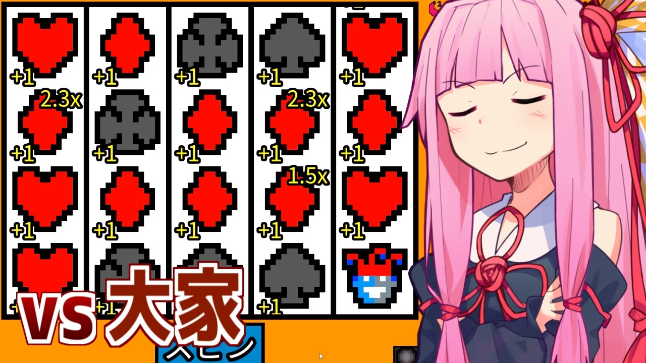 琴葉茜「悪いけど、フラッシュやで」<br>ゆかりん「フルハウス」<br>きりたん「4カード」<br>琴葉葵「ロイヤルストレート」<br><br>※望遠鏡の説明を修正しました<br><br>◇マイリスト <br>単発系:<a href="https://www.nicovideo.jp/mylist/63434282" target="_blank" rel="noopener">mylist/63434282</a><br>Part1リスト:<a href="https://www.nicovideo.jp/mylist/62982810" target="_blank" rel="noopener">mylist/62982810</a> <br><br>◇投稿者 <br>twitter:<a href="https://twitter.com/moco7800" target="_blank" rel="noopener nofollow">https://twitter.com/moco7800</a><br><br>◇ゲーム<br><a href="https://store.steampowered.com/app/1404850/_/" target="_blank" rel="noopener nofollow">https://store.steampowered.com/app/1404850/_/</a><br><br><a target="_blank" href="https://qa.nicovideo.jp/faq/show/19424?site_domain=default" style="font-size: 13px;color: #657586; text-decoration: underline; line-height: 1.4">この動画は投稿者によって修正されました</a>