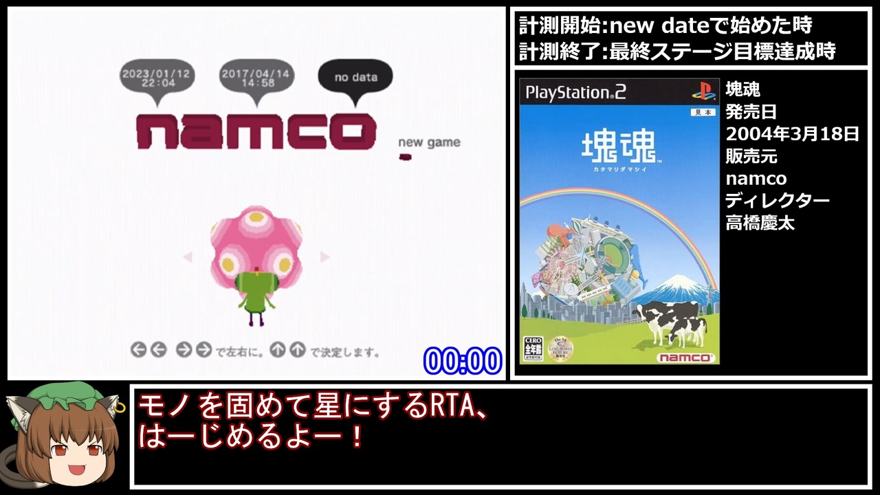 <span style="color: #ff0000; font-size: 24px;"><strong>みんな大好き塊魂アンコール<br>6月1日発売決定!!!</strong></span><br><br>前(みんな大好き塊魂RTA):<a href="https://www.nicovideo.jp/watch/sm31497708" class="watch">sm31497708</a><br>次:<a href="https://www.nicovideo.jp/watch/sm41765713" class="watch">sm41765713</a><br>計測区間<br>・タイマースタート:new gameした瞬間<br>・タイマーストップ:ステージ「月をつくる」で目標達成した瞬間<br><br>レギュレーションなど<br>・any%<br>・使用機種:PS2(高速読み込みあり)<br><br>無修正版(+ボツ録画):<a href="https://www.youtube.com/watch?v=pdZZVVscl0M" target="_blank" rel="noopener nofollow">https://www.youtube.com/watch?v=pdZZVVscl0M</a><br><br>RTAまとめ:<a href="https://www.nicovideo.jp/mylist/56827667" target="_blank" rel="noopener">mylist/56827667</a><br>更新報告:<a href="https://twitter.com/yamabukiginu" target="_blank" rel="noopener nofollow">https://twitter.com/yamabukiginu</a><br><br><br><span style="color: #262626;"><s>追記<br>17:40以降のおまけ動画に関して、<br>編集ミスで本編映像が流れないようになっております。<br>24時までには上書き投稿するので少々お待ちください</s></span><br>再追記(2023/02/06 23:09)<br>上書き投稿完了いたしました。<br>ご迷惑をおかけしてセンセンシャル!<br><br><a target="_blank" href="https://qa.nicovideo.jp/faq/show/19424?site_domain=default" style="font-size: 13px;color: #657586; text-decoration: underline; line-height: 1.4">この動画は投稿者によって修正されました</a>