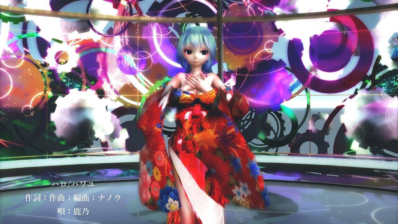 ハロ/ハワユ<br>作詞:作曲:編曲:ナノウ <br>唄:初音ミク<br><a href="https://www.nicovideo.jp/watch/sm11448603" class="watch">sm11448603</a><br><br>使用音源:ハロ/ハワユ 歌いました【鹿乃】<a href="https://www.nicovideo.jp/watch/sm11486845" class="watch">sm11486845</a><br><br>Motion:テトさんに「ハロ/ハワユ」を踊ってもらいました【完成】 どてらぽっと様<br>ーーーーーーーーーーーーーーーーーーーーーーー <br>ハロ/ハワユ 表情(リップなし)モーション 作成:紫音美菜<br>Face And Lips_v0381 Mogg様 (表情作成に使用) <a href="https://www.nicovideo.jp/watch/sm13888874" class="watch">sm13888874</a><br><br>CameraMotion:ハロ/ハワユカメラモーション【221112】<br>ーーーーーーーーーーーーーーーーーーーーーーー<br><br>Model:Tda式 重音テト kimono style 改変:紫音美菜<br><br>Stage:天球儀ステージ ゆづき(万年寝不足-別館)様<br><a href="https://seiga.nicovideo.jp/seiga/im4069022" target="_blank" rel="noopener nofollow">https://seiga.nicovideo.jp/seiga/im4069022</a><br><br>Stage:歯車ステージ2 山田淀子様<br><a href="https://seiga.nicovideo.jp/seiga/im6685222" target="_blank" rel="noopener nofollow">https://seiga.nicovideo.jp/seiga/im6685222</a><br><br>Shader<br>【MME配布】物理ベースシェーダsdPBR Ver. 4.40【MMD】サンドマン様<br><a href="https://www.nicovideo.jp/watch/sm41758229" target="_blank" rel="noopener nofollow">https://www.nicovideo.jp/watch/sm41758229</a><br><br>Effect: おたもん様 <br><a href="https://seiga.nicovideo.jp/seiga/im1561862" target="_blank" rel="noopener nofollow">https://seiga.nicovideo.jp/seiga/im1561862</a><br>Effect:ビームマンP様 <br><a href="https://www.nicovideo.jp/watch/sm21437138" target="_blank" rel="noopener nofollow">https://www.nicovideo.jp/watch/sm21437138</a><br>Effect:そぼろ様<br><a href="https://www.nicovideo.jp/watch/sm16087751" target="_blank" rel="noopener nofollow">https://www.nicovideo.jp/watch/sm16087751</a><br><br><br />■Effect & Shader<br>sdPBR480 (サンドマン様) <a href="https://www.nicovideo.jp/watch/sm43948524" target="_blank" rel="noopener nofollow">https://www.nicovideo.jp/watch/sm43948524</a><br>GodRay (ビームマンP様) <a href="https://www.nicovideo.jp/watch/sm14090670" target="_blank" rel="noopener nofollow">https://www.nicovideo.jp/watch/sm14090670</a><br>BeamMan_DOF (ビームマンP様) <a href="https://www.nicovideo.jp/watch/sm13465497" target="_blank" rel="noopener nofollow">https://www.nicovideo.jp/watch/sm13465497</a><br>ASVCnv Ver2 (ビームマンP様) <a href="https://www.nicovideo.jp/watch/sm42833937" target="_blank" rel="noopener nofollow">https://www.nicovideo.jp/watch/sm42833937</a><br>空気遠近 (化身バレッタ様) <a href="https://seiga.nicovideo.jp/seiga/im4505494" target="_blank" rel="noopener nofollow">https://seiga.nicovideo.jp/seiga/im4505494</a><br>空中に漂う埃 (化身バレッタ様) <a href="https://www.nicovideo.jp/watch/sm20916681" target="_blank" rel="noopener nofollow">https://www.nicovideo.jp/watch/sm20916681</a><br>そぼろ様:<a href="https://www.nicovideo.jp/watch/sm19123817" target="_blank" rel="noopener nofollow">https://www.nicovideo.jp/watch/sm19123817</a> / <a href="https://seiga.nicovideo.jp/seiga/im3061709" target="_blank" rel="noopener nofollow">https://seiga.nicovideo.jp/seiga/im3061709</a> / <a href="https://www.nicovideo.jp/watch/sm16087751" target="_blank" rel="noopener nofollow">https://www.nicovideo.jp/watch/sm16087751</a><br>おたもん様:<a href="https://seiga.nicovideo.jp/seiga/im1763840" target="_blank" rel="noopener nofollow">https://seiga.nicovideo.jp/seiga/im1763840</a> / <a href="https://seiga.nicovideo.jp/seiga/im1561862" target="_blank" rel="noopener nofollow">https://seiga.nicovideo.jp/seiga/im1561862</a><br>遠方を暗くするエフェクト (呉石様)<br><br>■Tool<br>VmdSizing 5.01.08 (miu様) <a href="https://seiga.nicovideo.jp/seiga/im9755721" target="_blank" rel="noopener nofollow">https://seiga.nicovideo.jp/seiga/im9755721</a><br>MikuMikuPlus / MikuMikuDance / Wondershare Filmora 15<br><br><br><br><br><br><br><br><br><br><br><br><br>