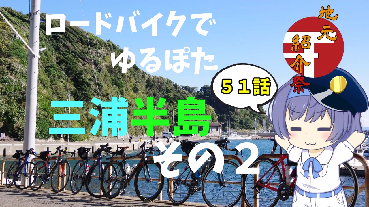 こんにちは、≧≧1(いち) です。<br>Vamkzさん主催の地元紹介祭(<a href="https://www.nicovideo.jp/watch/sm41436420" class="watch">sm41436420</a>)開催ありがとうございます!参加いたします!<br><br>ということで今回は三浦半島でのグループライドの様子を以て神奈川県は三浦半島のご紹介を。<br>三浦半島はですね。観音崎灯台、宮川公園、まぐろに立石公園、そして湘南国際村。久里浜に破崎緑地、横須賀…と、名所が多い!それらを楽しく回るのに自転車は丁度良いと思います。<br><br>では、本編をごゆるりとお楽しみくださいいただければ幸いです( ´∀`)<br><br>ロードバイクでゆるポタ 第10話【三浦半島】:<a href="https://www.nicovideo.jp/watch/sm39319706" class="watch">sm39319706</a><br><br>走行日:2022年11月3日<br>今回ご一緒した皆さん※五十音順<br>・Akuさん:<a href="https://www.nicovideo.jp/user/95850852" target="_blank" rel="noopener">user/95850852</a>(<a href="https://www.nicovideo.jp/watch/sm41338409" class="watch">sm41338409</a>)<br>・チャリできたきつねくん:<a href="https://www.nicovideo.jp/user/15035706" target="_blank" rel="noopener">user/15035706</a><br>・ぶいおさん:<a href="https://www.nicovideo.jp/user/2873435" target="_blank" rel="noopener">user/2873435</a><br>・まくらさん:<a href="https://www.nicovideo.jp/user/10102558" target="_blank" rel="noopener">user/10102558</a><br>・もふりぅさん:<br><br>訪れたお店<br>・温楽の里:神奈川県横須賀市馬堀海岸4-1-23<br>※ランナーズスパ、追加料金不要です<br>・まるよし食堂:神奈川県三浦市宮川町11-30<br>・マーロウ:神奈川県横須賀市秋谷3-6-27<br><br>訪れようとしてたお店<br>・できたて屋:神奈川県横須賀市長沢1丁目38−1<br><br>三浦半島のモニュメントについて<br><a href="https://www.laumi.jp/cycling/" target="_blank" rel="noopener nofollow">https://www.laumi.jp/cycling/</a><br><br>ふつおたお待ちしております!<br><a href="https://docs.google.com/forms/d/e/1FAIpQLSeyCOXK-J0S6PLenZJrp3RnnDIzDP_YImV8l7zWHur3Ycr2sA/viewform?usp=sf_link" target="_blank" rel="noopener nofollow">https://docs.google.com/forms/d/e/1FAIpQLSeyCOXK-J0S6PLenZJrp3RnnDIzDP_YImV8l7zWHur3Ycr2sA/viewform?usp=sf_link</a><br><br>★前の投稿 ぽたラジその8(コメント返し)<a href="https://www.nicovideo.jp/watch/sm41725654" class="watch">sm41725654</a><br><br>★次の投稿 バイク用品紹介祭参加します!