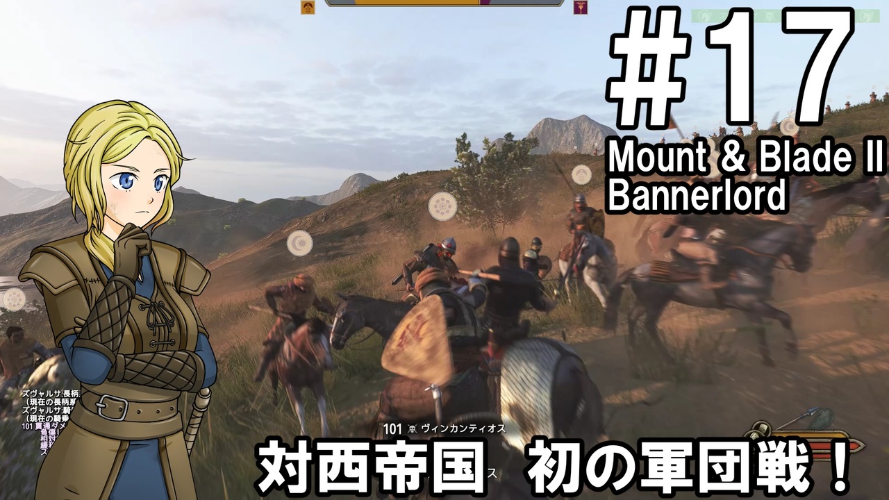 騎士のお姉さんによるMount & Blade 2 Bannerlord実況動画です<br>前回の攻城戦に続いて今回は総勢579名の中規模戦です<br>ようやくM&B2ならではの迫力ある戦闘をお届けできます<br><br><span style="color: #ff0000;"><strong>動画を楽しんでいただけたら、いいねボタンもよろしくお願いします!</strong></span><br><br>ゲーム:Mount & Blade II: Bannerlord<br><a href="https://store.steampowered.com/app/261550/Mount__Blade_II_Bannerlord/" target="_blank" rel="noopener nofollow">https://store.steampowered.com/app/261550/Mount__Blade_II_Bannerlord/</a><br>※動画はv1.0.3で録画したものです<br> <span style="color: #0000ff;"><strong>次回からv1.1.2でプレイしていきます</strong></span><br><br>モード:サンドボックス<br><br>難易度:Bannerlord<br><br>使用MOD<br>・Harmony Fonts<br> フォントをHarmonyOSに差し替えてv1.0.3以前の文字化けを解消する<br> <a href="https://www.nexusmods.com/mountandblade2bannerlord/mods/4144" target="_blank" rel="noopener nofollow">https://www.nexusmods.com/mountandblade2bannerlord/mods/4144</a><br>・RTS Camera<br> 街を紹介するための撮影で使用<br> <a href="https://www.nexusmods.com/mountandblade2bannerlord/mods/355" target="_blank" rel="noopener nofollow">https://www.nexusmods.com/mountandblade2bannerlord/mods/355</a><br><br>動画内SE<br>・効果音ラボ:<a href="https://soundeffect-lab.info" target="_blank" rel="noopener nofollow">https://soundeffect-lab.info</a><br><br>マイリスト:<a href="https://www.nicovideo.jp/mylist/74184273" target="_blank" rel="noopener">mylist/74184273</a><br><br><span style="color: #ff0000;"><strong>Youtube(高画質版)</strong></span><br>一気見総集編#11~#22:<a href="https://youtu.be/5WiQilpcCw4" target="_blank" rel="noopener nofollow">https://youtu.be/5WiQilpcCw4</a><br>単体#17:<a href="https://youtu.be/AC61hppCPtc" target="_blank" rel="noopener nofollow">https://youtu.be/AC61hppCPtc</a>