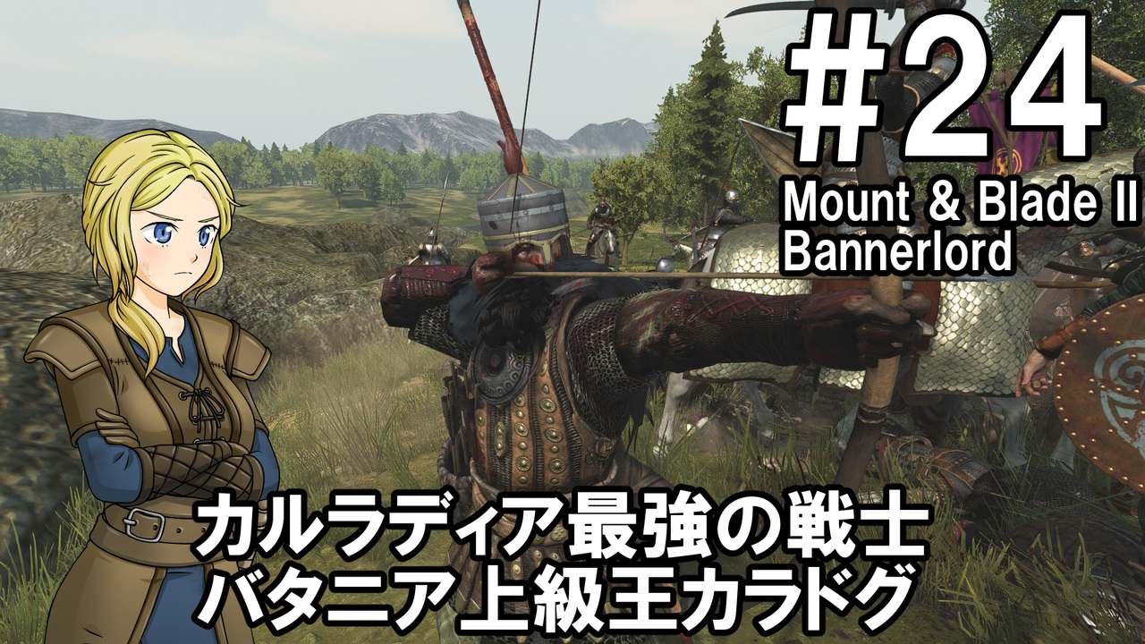 騎士のお姉さんによるMount & Blade 2 Bannerlord実況動画です<br>ペン・カノックの闘技大会でカラドグ王と対決したり、<br>バタニアの傭兵として西帝国の少数部隊を狩ったりします<br><br>参考動画に出てきたお師匠のステータスはこちら<br><a href="https://twitter.com/hota_tw/status/1661477176905170945?s=20" target="_blank" rel="noopener nofollow">https://twitter.com/hota_tw/status/1661477176905170945?s=20</a><br><br><span style="color: #ff0000;"><strong>動画を楽しんでいただけたら、いいねボタンもよろしくお願いします!</strong></span><br><br>ゲーム:Mount & Blade II: Bannerlord<br><a href="https://store.steampowered.com/app/261550/Mount__Blade_II_Bannerlord/" target="_blank" rel="noopener nofollow">https://store.steampowered.com/app/261550/Mount__Blade_II_Bannerlord/</a><br>※v1.1.3~v1.1.4でプレイしています<br><br>モード:サンドボックス<br><br>難易度:Bannerlord<br><br>使用MOD<br>・RTS Camera<br>街を紹介するための撮影で使用<br><a href="https://www.nexusmods.com/mountandblade2bannerlord/mods/355" target="_blank" rel="noopener nofollow">https://www.nexusmods.com/mountandblade2bannerlord/mods/355</a><br><br>動画内SE<br>・効果音ラボ:<a href="https://soundeffect-lab.info" target="_blank" rel="noopener nofollow">https://soundeffect-lab.info</a><br><br>マイリスト:<a href="https://www.nicovideo.jp/mylist/74184273" target="_blank" rel="noopener">mylist/74184273</a><br><br><span style="color: #ff0000;"><strong>Youtube(高画質版)</strong></span><br>一気見総集編#23~#35:<a href="https://youtu.be/KEp4dn67qKw" target="_blank" rel="noopener nofollow">https://youtu.be/KEp4dn67qKw</a><br>単体#24:<a href="https://youtu.be/2fETpX72Hb8" target="_blank" rel="noopener nofollow">https://youtu.be/2fETpX72Hb8</a>