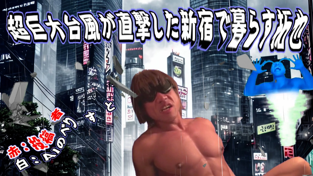 超巨大台風が直撃した新宿で暮らす拓也さん.AI