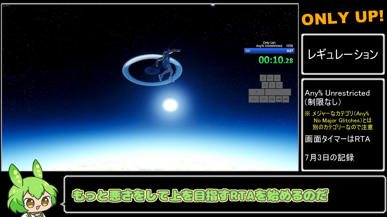 新しいバグで楽に高くジャンプしたので初投稿です。<br><br>Unrestricted(制限なし)でクリアを目指します。<br>※1 ルールはSpeedrun.comに準拠しています。<br>※2 キー入力を画面上に出さないと記録の申請が通らないようになりました(本カテゴリーに限り)。<br><br>前 → <a href="https://www.nicovideo.jp/watch/sm42415723" class="watch">sm42415723</a><br>次 → <a href="https://www.nicovideo.jp/watch/sm42519143" class="watch">sm42519143</a><br><br>元動画(字幕編集) <a href="http://youtu.be/n6Ofw_G3dYA" target="_blank" rel="noopener nofollow">http://youtu.be/n6Ofw_G3dYA</a><br>Twitter <a href="https://twitter.com/Hamaa7_" target="_blank" rel="noopener nofollow">https://twitter.com/Hamaa7_</a><br><br>Part1まとめ <a href="https://www.nicovideo.jp/mylist/73580294" target="_blank" rel="noopener nofollow">https://www.nicovideo.jp/mylist/73580294</a><br><br>VOICEVOX:ずんだもん <a href="https://voicevox.hiroshiba.jp" target="_blank" rel="noopener nofollow">https://voicevox.hiroshiba.jp</a><br>ずんだもん立ち絵 <a href="https://seiga.nicovideo.jp/seiga/im10887998" target="_blank" rel="noopener nofollow">https://seiga.nicovideo.jp/seiga/im10887998</a>
