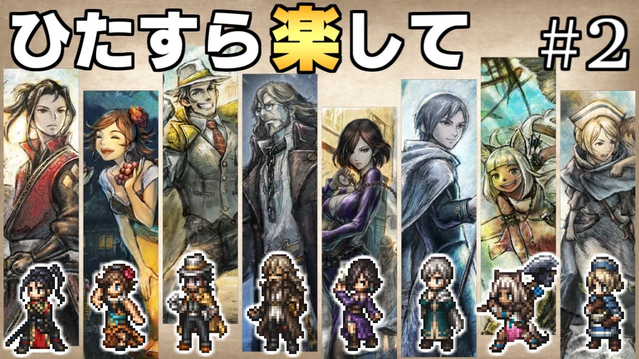 仲間を求めて<br><br>プレイ条件<br>1.最少勝利回数でラスボス&裏ボス撃破<br>2.必須戦闘以外で稼がない(捕獲・集金・盗む)<br>3.道中のアイテムは拾わない(宝箱・隠されたアイテム)<br>4.道中では確率に頼らない(確率系のFC・確率系の一緒に商売禁止)<br>5.傭兵よび・スケジュール交渉・加勢・摩訶不思議の舞・幸運の矢禁止<br>6.編集は頑張らない<br>※申し訳ないがバグ利用は全面的にNG<br><br>次→<a href="https://www.nicovideo.jp/watch/sm42502176" class="watch">sm42502176</a><br>part1→<a href="https://www.nicovideo.jp/watch/sm42436125" class="watch">sm42436125</a><br>再生リスト→<a href="https://www.nicovideo.jp/mylist/75397576" target="_blank" rel="noopener">mylist/75397576</a><br><br>ライブアライブもやってます→<a href="https://www.nicovideo.jp/watch/sm42267427" class="watch">sm42267427</a><br>ひたすら楽してオクトラ1はこちら→<a href="https://www.nicovideo.jp/watch/sm37813793" class="watch">sm37813793</a><br><br>他の挑戦シリーズとか→<a href="https://www.nicovideo.jp/mylist/3220744" target="_blank" rel="noopener">mylist/3220744</a> <br>YouTube版→<a href="https://goo.gl/oey5Y7" target="_blank" rel="noopener nofollow">https://goo.gl/oey5Y7</a><br>ニコニコニュースのインタビュー記事→<a href="https://originalnews.nico/284602" target="_blank" rel="noopener nofollow">https://originalnews.nico/284602</a><br><br>© 2023 SQUARE ENIX CO., LTD. All Rights Reserved.