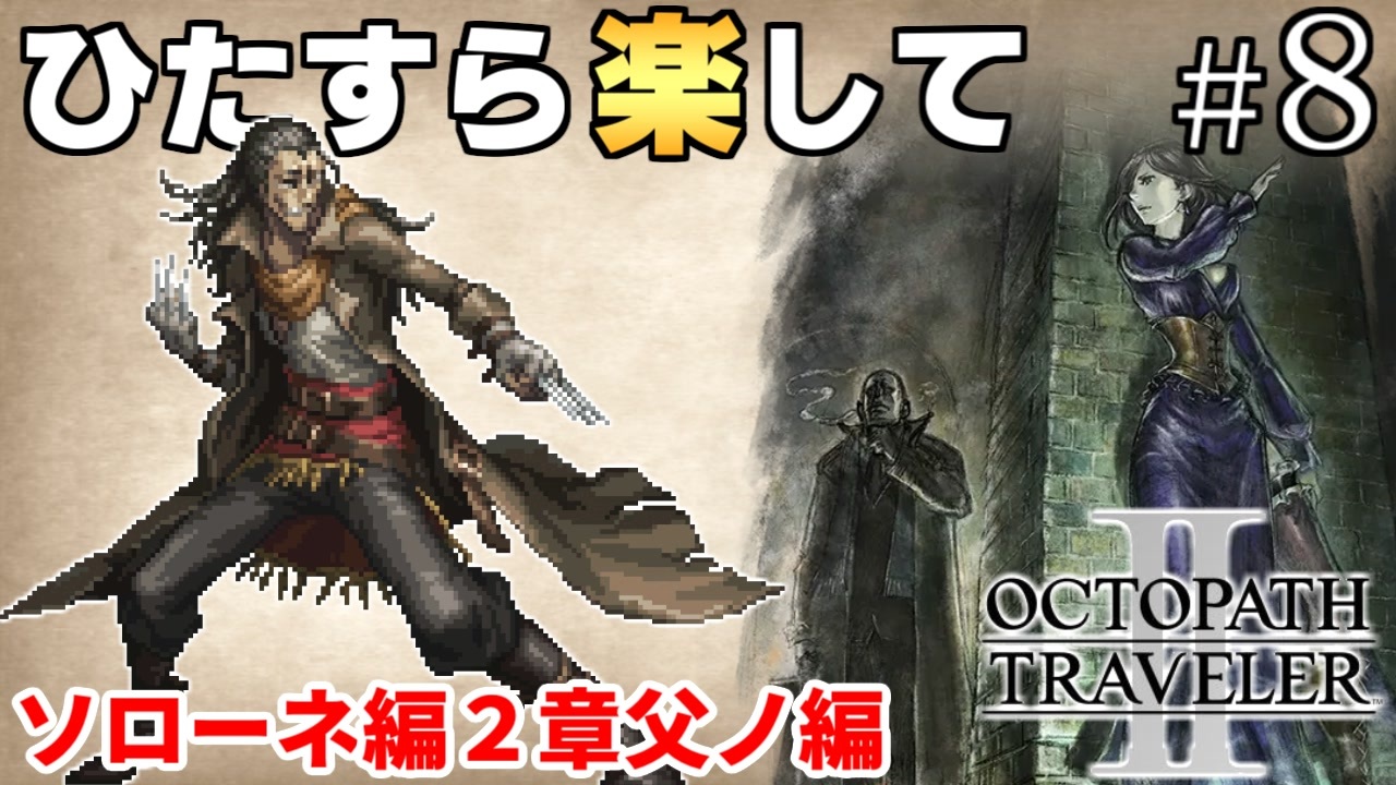 ソローネ編2章父ノ編<br><br>プレイ条件<br>1.最少勝利回数でラスボス&裏ボス撃破<br>2.必須戦闘以外で稼がない(捕獲・集金・盗む)<br>3.道中のアイテムは拾わない(宝箱・隠されたアイテム)<br>4.道中では確率に頼らない(確率系のFC・確率系の一緒に商売禁止)<br>5.傭兵よび・スケジュール交渉・加勢・摩訶不思議の舞・幸運の矢禁止<br>6.編集は頑張らない<br>※申し訳ないがバグ利用は全面的にNG<br><br><a href="https://www.nicovideo.jp/watch/sm42622815" class="watch">sm42622815</a>←前|次→<a href="https://www.nicovideo.jp/watch/sm42685148" class="watch">sm42685148</a><br>part1→<a href="https://www.nicovideo.jp/watch/sm42436125" class="watch">sm42436125</a><br>再生リスト→<a href="https://www.nicovideo.jp/mylist/75397576" target="_blank" rel="noopener">mylist/75397576</a><br><br>ライブアライブもやってます→<a href="https://www.nicovideo.jp/watch/sm42267427" class="watch">sm42267427</a><br>ひたすら楽してオクトラ1はこちら→<a href="https://www.nicovideo.jp/watch/sm37813793" class="watch">sm37813793</a><br><br>他の挑戦シリーズとか→<a href="https://www.nicovideo.jp/mylist/3220744" target="_blank" rel="noopener">mylist/3220744</a> <br>YouTube版→<a href="https://goo.gl/oey5Y7" target="_blank" rel="noopener nofollow">https://goo.gl/oey5Y7</a><br>ニコニコニュースのインタビュー記事→<a href="https://originalnews.nico/284602" target="_blank" rel="noopener nofollow">https://originalnews.nico/284602</a><br><br>© 2023 SQUARE ENIX CO., LTD. All Rights Reserved.