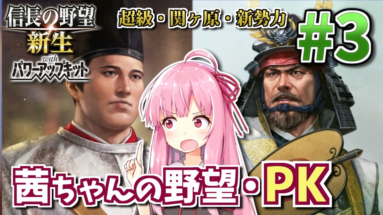 戦国時代が舞台の城取り戦略SLG「信長の野望・新生PK」を、軍師担当・結月ゆかりとうつけ担当・琴葉茜が琴葉家でプレイします。<br>未プレイの初心者向けの丁寧な解説を加えてるのでプレイ済みの方々はご了承ください。<br>第3話は果たして豊臣家徳川家に囲まれる中で泡沫大名琴葉家は勢力拡大できるのか?<br><br>前 : (<a href="https://www.nicovideo.jp/watch/sm42553719" class="watch">sm42553719</a>) <-> 次 : <a href="https://www.nicovideo.jp/watch/sm42686778" class="watch">sm42686778</a><br>このシリーズのリンク: <a href="https://www.nicovideo.jp/series/353641" target="_blank" rel="noopener">series/353641</a><br><br>■ プレイ環境: 信長の野望・新生PK Steam版<br>■ プレイ設定: <br> 難易度 超級 ・歴史イベントあり 寿命: 史実 討死あり<br> シナリオ 1600年・関ヶ原シナリオ 新勢力<br> 縛り: 東軍・西軍への臣従・同盟縛り<br><br>著作権表示: ©コーエーテクモゲームス<br />HoI4プレイ講座 → (<a href="https://www.nicovideo.jp/mylist/62136132" target="_blank" rel="noopener">mylist/62136132</a>)<br>EU4プレイ講座→(<a href="https://www.nicovideo.jp/mylist/61049948" target="_blank" rel="noopener">mylist/61049948</a>)<br>CK3プレイ講座→(<a href="https://www.nicovideo.jp/series/191974" target="_blank" rel="noopener">series/191974</a>)<br>Stellarisプレイ講座→(<a href="https://www.nicovideo.jp/series/263583" target="_blank" rel="noopener">series/263583</a>)<br>Vic3プレイ講座→(<a href="https://www.nicovideo.jp/series/364690" target="_blank" rel="noopener">series/364690</a>)<br>赤いシムシティ実況動画 → (<a href="https://www.nicovideo.jp/series/8074" target="_blank" rel="noopener">series/8074</a>)<br>太閤立志伝5 DX実況動画→ (<a href="https://www.nicovideo.jp/series/323444" target="_blank" rel="noopener">series/323444</a>)<br>信長の野望 小田家プレイ動画 → (<a href="https://www.nicovideo.jp/series/353641" target="_blank" rel="noopener">series/353641</a>)<br>紲星あかりF1参戦記→(<a href="https://www.nicovideo.jp/series/222744" target="_blank" rel="noopener">series/222744</a>)<br>あかねとあかりのソビエト国境警備隊!→ (<a href="https://www.nicovideo.jp/series/394983" target="_blank" rel="noopener">series/394983</a>)<br>Cities: Skylines2都市開発プレイ動画 → (<a href="https://www.nicovideo.jp/series/436779" target="_blank" rel="noopener">series/436779</a>)<br>Manor Lords村作りプレイ動画 → (<a href="https://www.nicovideo.jp/series/468306" target="_blank" rel="noopener">series/468306</a>)<br>全動画投稿リスト (<a href="https://www.nicovideo.jp/user/77964272" target="_blank" rel="noopener">user/77964272</a>)