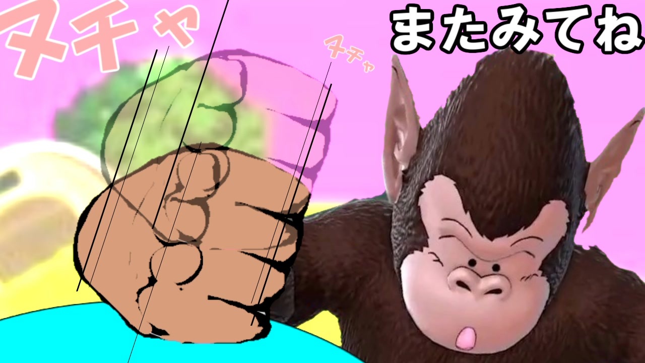 「お~いバブルスく~ん」界王はバブルスを呼ぶと欲求不満の凝縮された一本の肉棒を誇示しながら「頼むよ~」と催促する。バブルスはそのゴワゴワした手で肉棒を包み込み、上下。力強く握られた棒の先端が紫に変色するほど容赦なく握り込み、欲求不満を絞り出そうとしている。「そ、そんなに強いとすぐ出ちゃうよ~」血走った血管が興奮と欲情を運び、体の奥から尿道を伝い遺伝情報が今噴火しようとしていた。しかしバブルスはお構いなし。理性のリミッターのない彼に手加減などない。上下運動は加速し、界王はついに限界を迎えた!一筋の白き螺旋がバブルスの毛皮に噴射される。ぶっかかったその様は闇夜に浮かぶミルキーウェイ―天の川のようであった。<br>「まだ堪能したかったのに、ざんねん。ざんめん…ザー〇ン!なんちゃって!プシシ!」界王はダジャレで自爆しながら自身にクールダウンドリンクを血管注射し、己の欲望をもう一度滾らせた。「弟子もいないしドライブも飽きたし…ヤル事といったら1つだよね」界王はサイキック能力を用いバブルスを洗脳すると、腹話術のように彼に無理矢理宣言させる。「3000倍界王拳」バブルスは朱色の闘気を纏うと界王に馬乗りになり、己の秘穴に界王の肉棒を導き入れる!そこからは激しいロデオ!さながら暴れ馬を駆る騎馬兵、肉棒の見え隠れする激しい上下運動をバブルスは繰り返す!粘液の弾ける淫らな音、界王の雄叫びが蛇の道全体に響き渡り、界王には常に快楽の電気信号が背骨から爪先まで走りスパークしていた。マグロの界王の肉棒に、煮えくり返った欲求不満濁液が先端まで登ってくる!そして赤子のお漏らしのように、バブルスの中に迸る無責任な濁液を解き放つ。「あ~バブルスく~ん、よかったよ~」界王は全身粉砕骨折のバブルスに仙豆を食わせ、蘇生させる。彼は踊りながら立ち上がり、ウホウホと跳ねている。「あ~気持ちかった…さてもう寝ようかな」界王がベッドに横たわったその時だった。刹那の殺気が走ったかと思うと、界王の洋服が粉々に破かれ、空色をした柔肌を晒す。「何者だあ!?」<br>股の間にいたのはバブルスだった。しかし、度重なる瀕死からの蘇生と日々の酷使により、筋肉と憎しみが膨れ上がった別人、もとい別猿となっていた。「アナタヲ…イジメタイ」バブルスはまるで研磨された黒曜石の様な黒光りを放つ肉棒を前戯なしの界王の男穴に躊躇なく突っ込む!「ア…ア…」声で表せない快楽の衝撃。内壁が擦れる度、バブルスの歪な形の肉棒が跳ねる!回る!唸る!界王の腰は玩具の用にガサツに扱われ、破壊される寸前だった。その時、おびただしいバブルスの欲求不満が界王の腸内を駆け巡り、全身の穴という穴から濁液を垂れ流す!男穴も液を封じ込め切れず、決壊してベッド中を白く染めていた。「皆は動物で抜くのはやめようね!」界王はそう言い残すと息を引き取った…あ既に死んでたわ