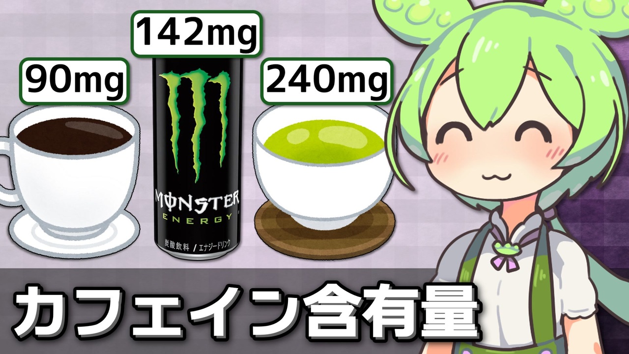 なにその顔www(サムネ)<br><br>前:<a href="https://www.nicovideo.jp/watch/sm42742801" class="watch">sm42742801</a> (カフェイン1日の摂取許容量)<br>次:<a href="https://www.nicovideo.jp/watch/sm42798393" class="watch">sm42798393</a> (最強カフェイン)<br>マイリスト:<a href="https://www.nicovideo.jp/mylist/73393608" target="_blank" rel="noopener">mylist/73393608</a><br><br><span style="font-size: 16px;"><strong>カフェインの摂取許容量を解説した前回動画はこちら!<br><a href="https://www.nicovideo.jp/watch/sm42742801" class="watch">sm42742801</a></strong></span><br><br>使わせていただいているもの(敬称略)<br>VOICEVOX/hiho[ <a href="https://voicevox.hiroshiba.jp/" target="_blank" rel="noopener nofollow">https://voicevox.hiroshiba.jp/</a> ]<br>ずんだもん立ち絵素材/坂本アヒル[<a href="https://seiga.nicovideo.jp/seiga/im10788496" target="_blank" rel="noopener">im10788496</a>]<br>東北きりたん立ち絵素材/坂本アヒル[<a href="https://seiga.nicovideo.jp/seiga/im10559822" target="_blank" rel="noopener">im10559822</a>]<br><br>Youtube版:<a href="https://youtu.be/V_yo8yLDUs0" target="_blank" rel="noopener nofollow">https://youtu.be/V_yo8yLDUs0</a><br>Twitter:<a href="https://twitter.com/Yuharudayo" target="_blank" rel="noopener nofollow">https://twitter.com/Yuharudayo</a>