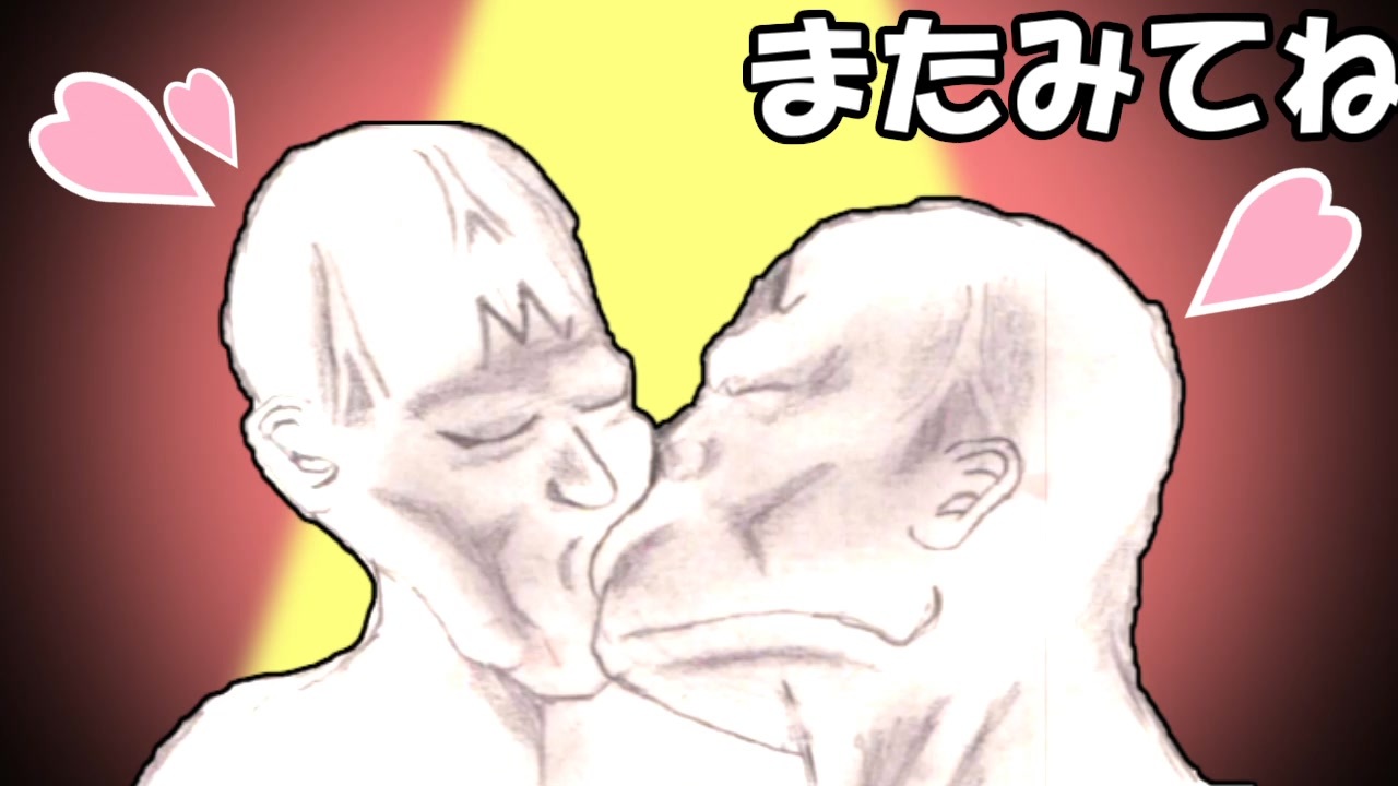 ブウにエネルギーを注入した俺達。このゲームにバビディとか出ないから残って作業とかすることないのでそのまま都に直帰した。俺とヤムーは有り余ったパワーの捌け口をどうするかお互いに言い出せずにいた。都の雑踏を並んで歩きながら、俺は漲る太い幹をズボンに隠して悟られないようにしていたのだが…沈黙を破ったのはヤムーの方からだった。「少し休もう…意味、分かるよな?」俺のズボンを指さす。しまった!粘液の滲み出るのだけは止められなかった。シミで勃起がバレてしまった…俺はヤムーにネオンの眩しい建物に導かれ、チェックインした。<br>俺はシャワーを浴びながら肉棒を何度も扱いていた。時に先端にシャワーをぶち当てながら、何度も何度も浴室のタイルを白く濁していった。ダメだ。どんなに出したってこの有り余るパワーを出し切れない。無尽蔵に溢れるこの濁液を、誰が止めてくれるのか!「まだシャワー浴びてるのか、スポポビッチ」ヤムーが入ってきた。マズイ、こんな男臭い白濁浴場を見たら嫌われてしまう…だが欲情していたのはヤムーも同じだった。彼の背後を覗くと洗面台が濁液でいっぱいになっていた。なんだか山芋みたい。「続きはベッドで、だ。早くあがってしまえ」ヤムーは売店の小道具を俺で試したいという。俺は内心ワクワクしながら浴場を後にした…<br>「体が…痛いような、苦しいような…」俺はヤムーに縛り上げられていた。縄が肉に食い込み、身動きができない。自分にできるのは、肉棒を跳ねさせることのみ。「もう自分で慰める事も出来んだろ」ヤムーは嘲笑を浮かべながら乳首に舌を這わせ、固くなっていく先端を唇で包む。赤子が乳を飲むそれとは違う、バイオレントな舌技は俺の肉棒に欲求不満を充填させるのに十分であった。早く。こいつを触ってほしい!いじめ抜いてほしい!遺伝子の迸りを思い切りぶちまけたい!もう乳首だけでは満足できない!「し…下もいじってくれ…頼む…!」「どうするかな…」肉棒の先端から透明な雫が糸を引きベッドを濡らす。遺伝子の製造が止まらないのにぶちまける事ができず行き場を塞がれパンパンに膨れ上がった2粒の果実。それを見たヤムーは果実に唇で食らいつき、唾液を纏わせながら口に含む。ダメだ!頭が発射の二文字でいっぱいになる!発射発射発射発射!肉棒は血管を剥き出しにし、噴火を封じている。「ヤムー、おれもう」「俺のナカで出すのと、ここでぶちまけるの、どっちがいい?」「ナカ!ナカがいい!」「ケケ…」悪戯に笑い、ついに菊門と肉棒が接触する!徐々に開かれる門に飲み込まれる棒は、その柔らかな衝撃に耐えられない!俺は中の感触を味わいながら、ヤムーの中に無責任噴射をかます!ポンプの様に腸壁を白い溶岩が幾度も叩く!決壊した奴の菊門から流れ落ちる白き迸りを眺めながら、俺は疲れ切って…彼の隣で眠ってしまった…<br>明くる朝、俺たちは都を後にした―