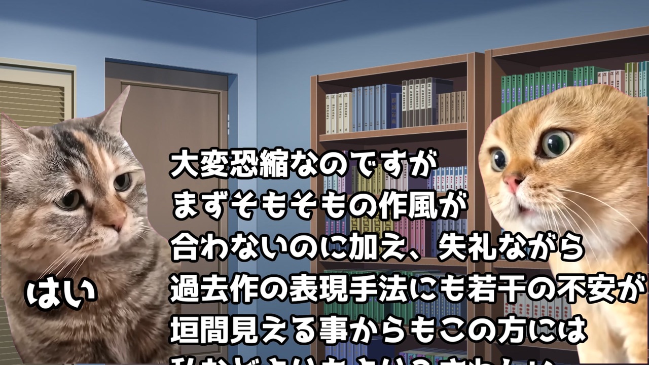ニコニコで全然流行ってないツイッターで流行ってる猫のやつです<br /><span style="color: #38761d;"> 〇TRPGシリーズ:<a href="https://www.nicovideo.jp/series/3123" target="_blank" rel="noopener">series/3123</a><br> 〇東方シリーズ:<a href="https://www.nicovideo.jp/series/2943" target="_blank" rel="noopener">series/2943</a><br> 〇琴葉短編実況シリーズ:<a href="https://www.nicovideo.jp/series/267877" target="_blank" rel="noopener">series/267877</a><br> 〇漫画連載するよシリーズ:<a href="https://www.nicovideo.jp/series/442525" target="_blank" rel="noopener">series/442525</a><br> ☆全シリーズ一覧:<a href="https://www.nicovideo.jp/user/24250283/series" target="_blank" rel="noopener nofollow">https://www.nicovideo.jp/user/24250283/series</a></span><br><br><br><br><br><br><br><br><br><br><span style="font-size: 16px;"><strong>【漫画化ラノベ】 『もしもチート小説の主人公がうっかり人を殺したら』</strong></span><br><span style="color: #4a86e8;"><strong>・原作を読む <a href="https://kakuyomu.jp/works/16816927860908055273" target="_blank" rel="noopener nofollow">https://kakuyomu.jp/works/16816927860908055273</a> </strong></span><br><span style="color: #ff00ff;"><strong>・漫画を読む(ニコニコ漫画) <a href="https://seiga.nicovideo.jp/watch/mg954040" target="_blank" rel="noopener">mg954040</a> (★9/23 に最終話更新)</strong></span><br><strong>・コミックス1巻 <a href="https://amzn.to/4hwXV9Q" target="_blank" rel="noopener nofollow">https://amzn.to/4hwXV9Q</a><br>・2巻 <a href="https://amzn.to/4hwmUKE" target="_blank" rel="noopener nofollow">https://amzn.to/4hwmUKE</a></strong><br><span style="font-size: 24px;"><strong>・3巻 <a href="https://amzn.to/42SWiPa" target="_blank" rel="noopener nofollow">https://amzn.to/42SWiPa</a></strong></span><br><strong>・単話販売 <a href="https://amzn.to/40NRo5c" target="_blank" rel="noopener nofollow">https://amzn.to/40NRo5c</a></strong><br>Amazonのアソシエイトとして、ガッkoyaは適格販売により収入を得ています😭!!!!<br><br><span style="color: #ff0000; font-size: 24px;">最新の投稿動画(2025/10/27)</span><br><span style="color: #9900ff; font-size: 24px;">僕原作の漫画の三巻が出るし、隕石でこの世界は滅ぶ <a href="https://www.nicovideo.jp/watch/sm45557641" class="watch">sm45557641</a></span>