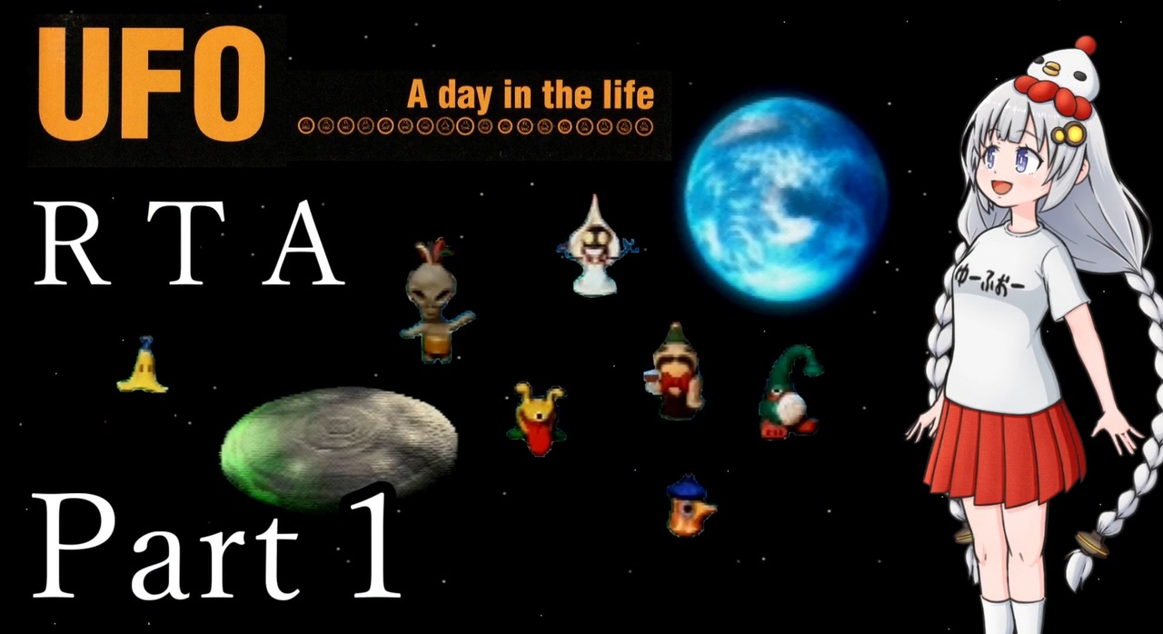 PlayStationゲーム「UFO -A day in the life-」RTAです。<br>個性的な宇宙人達と個性的な住人達の一日を楽しんでもらえると嬉しいです。<br><br>次:<a href="https://www.nicovideo.jp/watch/sm43451317" class="watch">sm43451317</a><br><br>■計測区間<br>「はじめましてを選択」から「UFO帰還後の暗転」まで<br><br>■動画作成にあたり<br>・あかりちゃんイラスト<br>mobushiさん:<a href="https://twitter.com/mobushi" target="_blank" rel="noopener nofollow">https://twitter.com/mobushi</a><br>・音声ソフト<br>VOICEROID2 紲星あかり<br><br>■全編ぶっ通し(無編集)<br><a href="https://youtu.be/HTaZszMwxQA" target="_blank" rel="noopener nofollow">https://youtu.be/HTaZszMwxQA</a><br><br>■X(Twitter)<br>やまのひ:<a href="https://twitter.com/bergtag0811" target="_blank" rel="noopener nofollow">https://twitter.com/bergtag0811</a><br>------------------------<br>【誤記載訂正】<br>・右枠でフラットウッズくんの名前を書き間違えてました。申し訳ありません。<br>×:フラストウッズ<br>〇:フラットウッズ