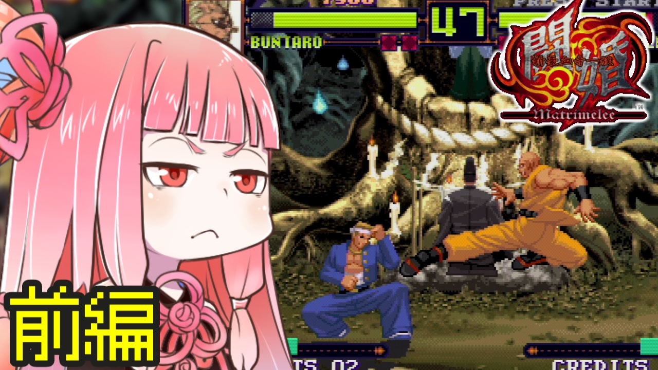 ずん子と茜がハードを問わずに色々なレトロゲームを遊ぶ動画です。<br>レッツゴー!陰陽師(<a href="https://www.nicovideo.jp/watch/sm9" class="watch">sm9</a>)は格闘ゲームのBGMだった!?<br><br><strong>【今回遊ぶゲーム】</strong><br>ネオジオ「新豪血寺一族 闘婚 ~Matrimelee~」<br>発売年:2003年 メーカー:プレイモア(開発:ノイズファクトリー)<br><br>※画質設定<strong>480p</strong>または<strong>720p</strong>でのご視聴を推奨します。<br> (それ以外の設定だとエフェクトが正しく描画されません)<br>※収録機器の関係で画面にノイズや乱れがあります。<br>※茜の関西弁が怪しい箇所があります。<br><br>#1→<a href="https://www.nicovideo.jp/watch/sm35781397" class="watch">sm35781397</a><br><br>#57→<a href="https://www.nicovideo.jp/watch/sm43335266" class="watch">sm43335266</a><br>#58<strong>後編</strong>→<a href="https://www.nicovideo.jp/watch/sm43533949" class="watch">sm43533949</a><br />_____________________<br><br><strong>マイリスト(全動画一覧)</strong>→<a href="https://www.nicovideo.jp/mylist/66632451" target="_blank" rel="noopener">mylist/66632451</a><br><strong>ずん子と茜とレトロゲーム</strong>→<a href="https://www.nicovideo.jp/mylist/68686405" target="_blank" rel="noopener">mylist/68686405</a><br><strong>X(旧・</strong><span style="color: #1155cc;"><strong>Twitter</strong></span><strong>)</strong>→<a href="https://twitter.com/Cocoa_sasami" target="_blank" rel="noopener nofollow">https://twitter.com/Cocoa_sasami</a>