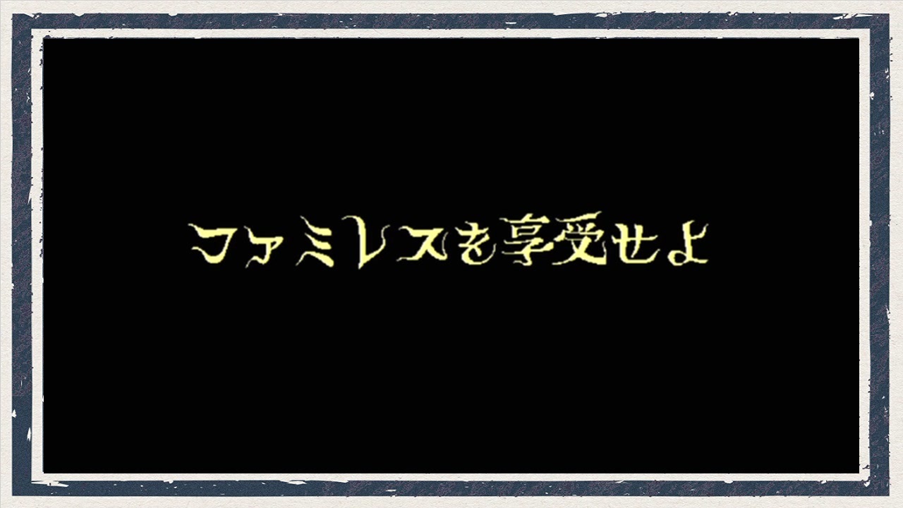 ▽ 2023年配信のSwitch版『ファミレスを享受せよ』の実況プレイです<br><br>最終回です<br>ここまであっという間でしたが…<br>また忘れられない、素敵なゲームと出会えましたね<br><br>色々と喋りたくなってしまったので、<br>感想喋るだけの動画も1本投稿する予定です<br><br><br><a href="https://www.nicovideo.jp/watch/sm43658545" class="watch">sm43658545</a> ⇐ 前 | <a href="https://www.nicovideo.jp/series/467586" target="_blank" rel="noopener">series/467586</a> | 感想回⇒<a href="https://www.nicovideo.jp/watch/sm43672693" class="watch">sm43672693</a><br><br>▽ 高画質版〈Youtube〉<br><a href="https://youtu.be/p26WSyajZlU" target="_blank" rel="noopener nofollow">https://youtu.be/p26WSyajZlU</a><br><br>▽ X<br><a href="http://twitter.com/fuhiky" target="_blank" rel="noopener nofollow">http://twitter.com/fuhiky</a>