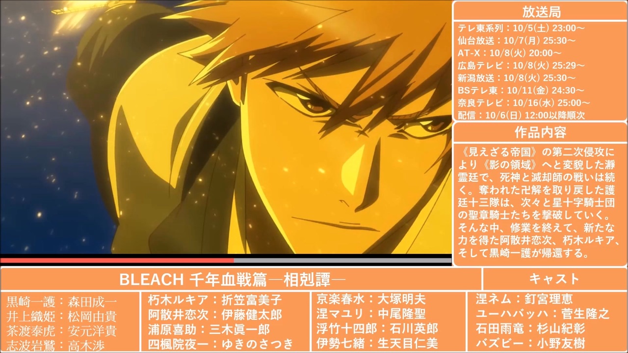 2024年 秋の新作アニメ紹介です<br><br>紹介アニメ:村井の恋, 監禁区域レベルX, ひとりぼっちの異世界攻略, 魔王様、リトライ!R, 転生貴族、鑑定スキルで成り上がる, 嘆きの亡霊は引退したい, 甘神さんちの縁結び, 歴史に残る悪女になるぞ, アクロトリップ, 新テニスの王子様 U-17 WORLD CUP, Re:ゼロから始める異世界生活 3rd season 襲撃編, 結婚するって、本当ですか, アオのハコ, ダンダダン, メカウデ, るろうに剣心 -明治剣客浪漫譚- 京都動乱, 株式会社マジルミエ, ソードアート・オンライン オルタナティブ ガンゲイル・オンラインⅡ, ダンジョンに出会いを求めるのは間違っているだろうかⅤ 豊穣の女神篇, アイドルマスター シャイニーカラーズ 2nd season, 凍牌~裏レート麻雀闘牌録~, BLEACH 千年血戦篇―相剋譚―, ブルーロック VS. U-20 JAPAN, チ。ー地球の運動についてー, 青の祓魔師 雪ノ果篇, らんま1/2, ラブライブ!スーパースター!! 第3期, ぷにるはかわいいスライム, 夏目友人帳 漆, ドラゴンボールDAIMA, シャングリラ・フロンティア 2nd Season, 青のミブロ, 機動戦士ガンダム 復讐のレクイエム<br><br>他 全69タイトル<br><br>前(2024年秋1/3) → <a href="https://www.nicovideo.jp/watch/sm44133672" class="watch">sm44133672</a><br>次(2024年秋3/3) → <a href="https://www.nicovideo.jp/watch/sm44133744" class="watch">sm44133744</a><br><br>アニメ紹介マイリスト<br><a href="https://www.nicovideo.jp/mylist/55766254" target="_blank" rel="noopener">mylist/55766254</a><br><br>アニメ紹介動画投稿、アニメまとめ画像投稿の<br>お知らせ用Twitterアカウント<br><a href="https://twitter.com/mikan_anime_nc" target="_blank" rel="noopener nofollow">https://twitter.com/mikan_anime_nc</a><br><br>まとめ画像はこちら<br><a href="https://ux.getuploader.com/mikan_anime_nc/download/" target="_blank" rel="noopener nofollow">https://ux.getuploader.com/mikan_anime_nc/download/</a><br><br>YouTubeに一括版をアップロードしています(一部カットあり)<br><a href="https://www.youtube.com/channel/UCRwO2ZgL67a0aARHbVmTj7A" target="_blank" rel="noopener nofollow">https://www.youtube.com/channel/UCRwO2ZgL67a0aARHbVmTj7A</a><br>