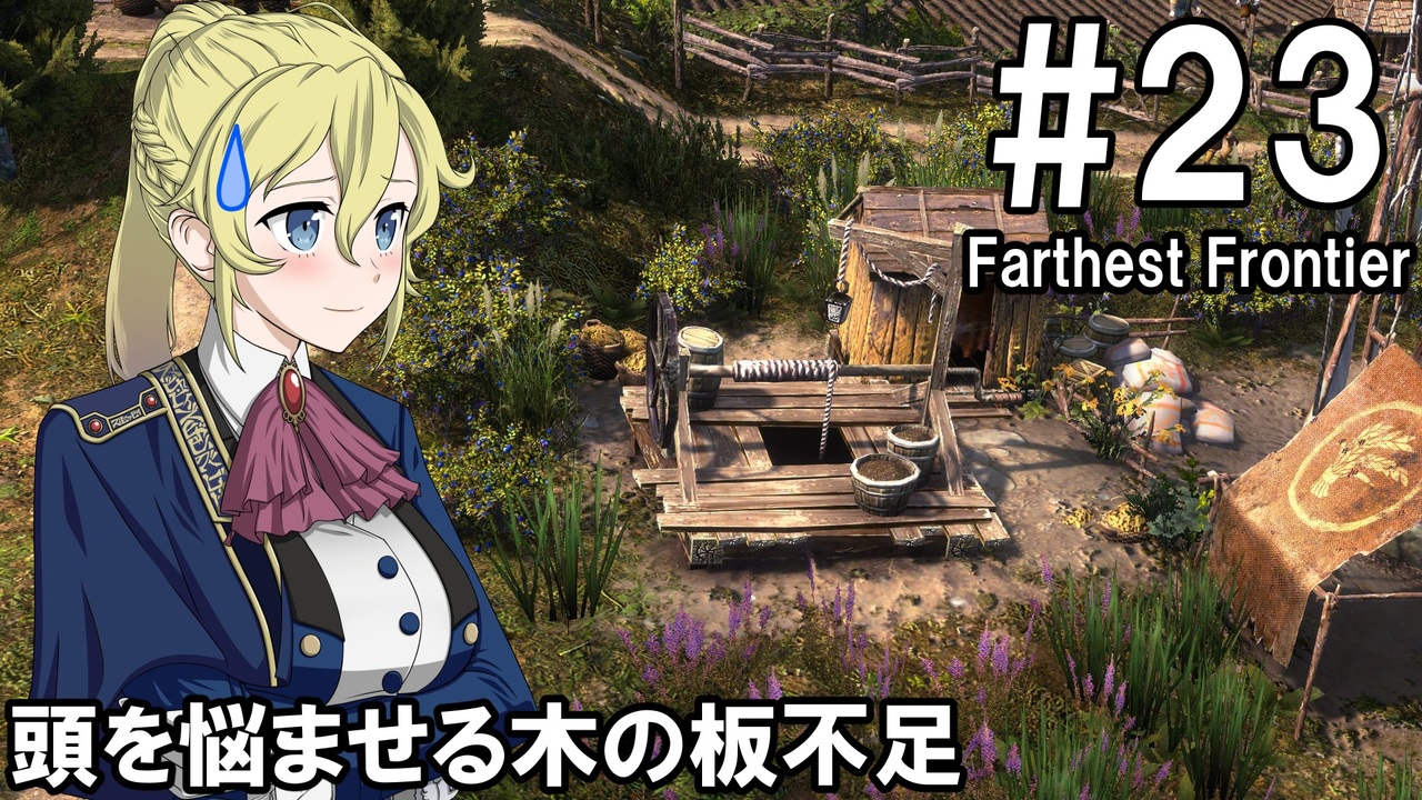 領主のお姉さんによるFarthest Frontier実況動画です<br>Tier3へアップグレードするために木の板の在庫を増やさないといけない<br>でも建築を中断して開発を止めるわけにもいかない…そんなジレンマが楽しめる時期を描いた回です<br><br>動画内に登場する立ち絵キャラは、ゲーム内の住民ではなく各職業を擬人化した存在程度に思ってご視聴ください<br><br>ゲーム:Farthest Frontier<br><a href="https://store.steampowered.com/app/1044720/Farthest_Frontier/" target="_blank" rel="noopener nofollow">https://store.steampowered.com/app/1044720/Farthest_Frontier/</a><br>※v0.9.6でプレイしています<br><br>※マップデータ<br>難易度:征服者<br>マップ:山岳地方の谷間<br>マップサイズ:大<br>シード値:0BFCC93A853<br><br>動画内SE<br>・効果音ラボ:<a href="https://soundeffect-lab.info" target="_blank" rel="noopener nofollow">https://soundeffect-lab.info</a><br><br>マイリスト:<a href="https://www.nicovideo.jp/mylist/76994796" target="_blank" rel="noopener">mylist/76994796</a><br>高画質版:<a href="https://youtu.be/7hVnRj_qY5A" target="_blank" rel="noopener nofollow">https://youtu.be/7hVnRj_qY5A</a><br><br><span style="color: #ff0000; font-size: 18px;"><strong>動画を楽しんでいただけたら、いいねボタンもよろしくお願いします!</strong></span><br><br><a target="_blank" href="https://qa.nicovideo.jp/faq/show/19424?site_domain=default" style="font-size: 13px;color: #657586; text-decoration: underline; line-height: 1.4">この動画は投稿者によって修正されました</a>