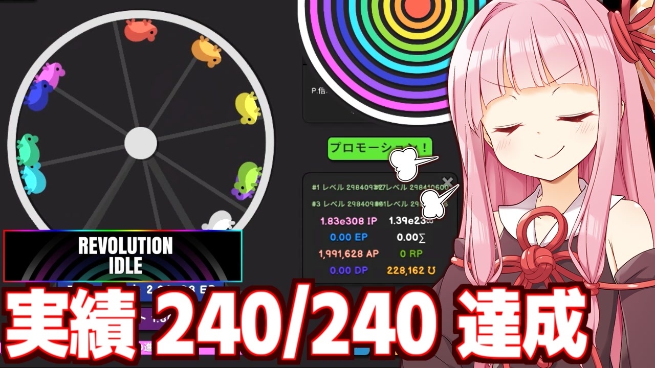琴葉葵「今、分かった。神はこの実績を取らすために、1000年の時を永らえさせたのだ...」 <br>茜ちゃん「実際には一日ちょっとで取れたで」<br><br>◇マイリスト <br>単発動画:<a href="https://www.nicovideo.jp/mylist/63434282" target="_blank" rel="noopener">mylist/63434282</a><br>Part1リスト:<a href="https://www.nicovideo.jp/mylist/62982810" target="_blank" rel="noopener">mylist/62982810</a> <br><br>◇投稿者 <br>twitter:<a href="https://twitter.com/moco7800" target="_blank" rel="noopener nofollow">https://twitter.com/moco7800</a><br><br>◇ゲーム<br><a href="https://store.steampowered.com/app/2763740/Revolution_Idle/" target="_blank" rel="noopener nofollow">https://store.steampowered.com/app/2763740/Revolution_Idle/</a><br><br>◇参考<br>Revolution Idle Wiki*<br><br>◇猫のイラスト<br>ねこ画伯コハクちゃん様