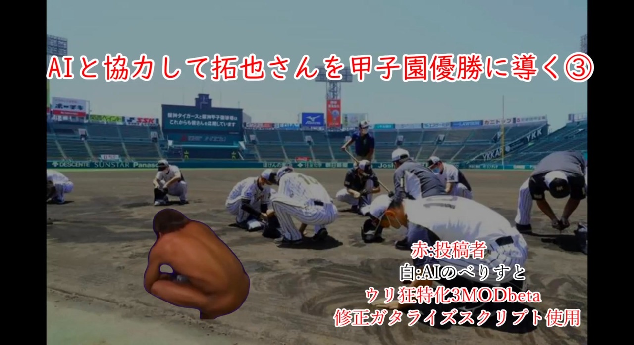 Takuya Video Dumpより転載<br>元動画:<a href="https://www.nicovideo.jp/watch/sm41874360" class="watch">sm41874360</a><br>投稿者:草加拓也<br>以下説明文<br><br>いい加減にしろ。<br><br>もっと試合中の会話が欲しい→ウッス!クソアホAI君は試合内容に合った台詞を書いてくれないのでダイジェストでやってきたけど次回は頑張って調教する予定っす!<br><br>野球ものなのに試合描写がガバガバどころかスカスカなのは帝国騎士としてあるまじき失態ですが、テクなし人力で真面目に描写するより多少めちゃくちゃでもAIくんに激エロ野球してもらったほういいよな<br /><br><br>【再投稿拓也】<br>ほぼ削除:<a href="https://www.nicovideo.jp/series/449801" target="_blank" rel="noopener">series/449801</a><br><br> 非公開:<a href="https://www.nicovideo.jp/series/507594" target="_blank" rel="noopener">series/507594</a><br><br><br>【ここからオレの↓】<br>同人拓也(人力拓也)<br><a href="https://www.nicovideo.jp/series/438451" target="_blank" rel="noopener">series/438451</a><br><br>ai拓也<br><a href="https://www.nicovideo.jp/series/435212" target="_blank" rel="noopener">series/435212</a><br><br>再翻訳とか改変とかタクヤ学<br><a href="https://www.nicovideo.jp/series/437379" target="_blank" rel="noopener">series/437379</a><br><br>bb<br><a href="https://www.nicovideo.jp/series/446026" target="_blank" rel="noopener">series/446026</a>