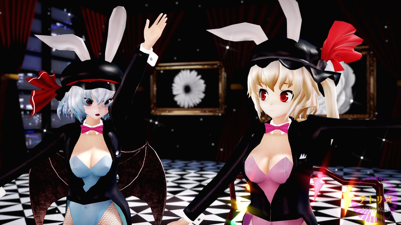 2人に踊ってもらいました。この作品は「東方project」の2次創作です。<br>現在、作成リクエストは受け付けていません。<br><br><br>【楽曲】:「テトリス」:柊マグネタイト様 <a href="https://www.nicovideo.jp/watch/sm44301514" class="watch">sm44301514</a><br><br>【振付&トレース元】:【月浪×丸井かお】『テトリス』踊ってみた【オリジナル振付】 <a href="https://www.nicovideo.jp/watch/sm44518411" class="watch">sm44518411</a><br><br>【モーション】:午前様 <a href="https://www.nicovideo.jp/watch/sm45130277" class="watch">sm45130277</a><br><br>【カメラ】:形無れい様 <a href="https://www.nicovideo.jp/watch/sm45134241" class="watch">sm45134241</a><br><br><br>■ステージ<br>stage_15 :hazi: 様 <a href="https://seiga.nicovideo.jp/seiga/im4834311" target="_blank" rel="noopener">im4834311</a><br>stage_104:hazi: 様 <a href="https://seiga.nicovideo.jp/seiga/im11083350" target="_blank" rel="noopener">im11083350</a><br>ネオンルーム:jimbogies様 ばんぞく様 <a href="https://seiga.nicovideo.jp/seiga/im11672013" target="_blank" rel="noopener">im11672013</a><br><br>■モデル<br>フラン:すけ様<br>レミリア:J・クレイ様<br>衣装:島風バニー:HVP様 <a href="https://www.nicovideo.jp/watch/sm29804223" class="watch">sm29804223</a><br> 燕尾服ver2.0:黒鬼様 <a href="https://seiga.nicovideo.jp/seiga/im9543753" target="_blank" rel="noopener">im9543753</a>(女性用に改変)<br><br>■エフェクト<br>Ray-mmd-1.5.2:Rui様<br>初心者マテリアル:さらしな様<br>肌マテリアル:MARUSU様<br>AutoLuminous4:そぼろ様<br>空中に漂う埃:化身バレッタ様<br>ikBokeh_v020a:ikeno様<br><br><br>MikuMikuDance:樋口優様<br>MMEffect :舞力介入P様<br>PMDE、PmxE:極北P様<br>AviUtl :KENくん様<br>・Aviutl + x264guiExでエンコード:rigaya様<br>Ut Video Codec Suite:ゆーむP様<br>上海アリス幻楽団・東方project(ZUN様)<br><br><br>mylist ③<a href="https://www.nicovideo.jp/mylist/75586824" target="_blank" rel="noopener">mylist/75586824</a> ② <a href="https://www.nicovideo.jp/mylist/72970530" target="_blank" rel="noopener">mylist/72970530</a> ① <a href="https://www.nicovideo.jp/mylist/63690967" target="_blank" rel="noopener">mylist/63690967</a> 旧 <a href="https://www.nicovideo.jp/mylist/61238351" target="_blank" rel="noopener">mylist/61238351</a><br><br> ※動画の転載は禁止です。<br>Attention,Unauthorized reproduction prohibited!!