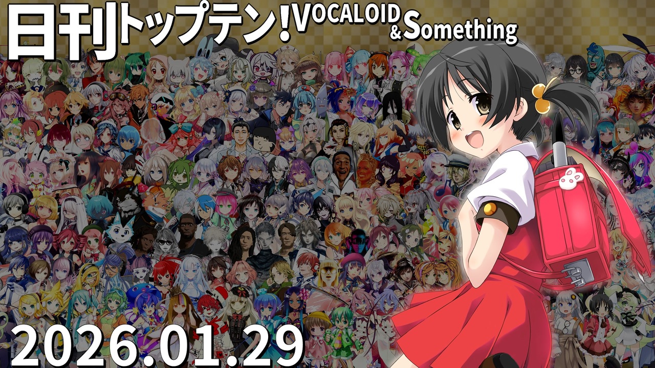 前日(1/28)←<a href="https://www.nicovideo.jp/watch/sm45932460" class="watch">sm45932460</a> <a href="https://www.nicovideo.jp/watch/sm45935513" class="watch">sm45935513</a>→翌日(1/30)<br>★毎号のTOP3をXでまとめて確認できます!<a href="https://tinyurl.com/4sur67rb" target="_blank" rel="noopener nofollow">https://tinyurl.com/4sur67rb</a><br>★チャプター<br>昨日1位<a href="#" class="seekTime" data-seekTime="0:00" onclick="seekNicoPlayer('#0:00'); return false;">#0:00</a> TOP10<a href="#" class="seekTime" data-seekTime="0:36" onclick="seekNicoPlayer('#0:36'); return false;">#0:36</a> 1年前<a href="#" class="seekTime" data-seekTime="2:56" onclick="seekNicoPlayer('#2:56'); return false;">#2:56</a> TOP3<a href="#" class="seekTime" data-seekTime="3:24" onclick="seekNicoPlayer('#3:24'); return false;">#3:24</a> 10年前<a href="#" class="seekTime" data-seekTime="4:55" onclick="seekNicoPlayer('#4:55'); return false;">#4:55</a> PICKUP<a href="#" class="seekTime" data-seekTime="5:23" onclick="seekNicoPlayer('#5:23'); return false;">#5:23</a> <br><br><br>★トップテン<br>10:<a href="https://www.nicovideo.jp/watch/sm45874978" class="watch">sm45874978</a> 9:<a href="https://www.nicovideo.jp/watch/sm45872526" class="watch">sm45872526</a> 8:<a href="https://www.nicovideo.jp/watch/sm45880978" class="watch">sm45880978</a> 7:<a href="https://www.nicovideo.jp/watch/sm45873065" class="watch">sm45873065</a> <br>6:<a href="https://www.nicovideo.jp/watch/sm45882221" class="watch">sm45882221</a> 5:<a href="https://www.nicovideo.jp/watch/sm45884769" class="watch">sm45884769</a> 4:<a href="https://www.nicovideo.jp/watch/sm45874042" class="watch">sm45874042</a> 3:<a href="https://www.nicovideo.jp/watch/so45839025" class="watch">so45839025</a> 2:<a href="https://www.nicovideo.jp/watch/sm45883571" class="watch">sm45883571</a> 1:<a href="https://www.nicovideo.jp/watch/sm45880142" class="watch">sm45880142</a> <br><br>★ピックアップ(B~Dは超新着枠)<br>B:<a href="https://www.nicovideo.jp/watch/sm45885367" class="watch">sm45885367</a> C:<a href="https://www.nicovideo.jp/watch/sm45883089" class="watch">sm45883089</a> D:<a href="https://www.nicovideo.jp/watch/sm45865989" class="watch">sm45865989</a> E:<a href="https://www.nicovideo.jp/watch/sm45871934" class="watch">sm45871934</a> F:<a href="https://www.nicovideo.jp/watch/sm45865948" class="watch">sm45865948</a> G:<a href="https://www.nicovideo.jp/watch/sm45869830" class="watch">sm45869830</a> <br>H:<a href="https://www.nicovideo.jp/watch/sm45876487" class="watch">sm45876487</a> I:<a href="https://www.nicovideo.jp/watch/sm45866111" class="watch">sm45866111</a> J:<a href="https://www.nicovideo.jp/watch/sm45865196" class="watch">sm45865196</a> <br><br>★プレイバック <br>A(1年前):<a href="https://www.nicovideo.jp/watch/sm44588693" class="watch">sm44588693</a> 十(10年前):<a href="https://www.nicovideo.jp/watch/sm28104632" class="watch">sm28104632</a> 前日の第1位: <a href="https://www.nicovideo.jp/watch/sm45877045" class="watch">sm45877045</a>(歌愛ユキ)<br><br>☆集計対象:2026/1/22~29 5時投稿の作品(1/29 5時集計)<br>★計算式:再生×1+コメント×最大12+いいね!×10+マイリスト×11<br>☆プレイリスト:<u><a href="https://nikkantop10.hatenablog.com/entry/ar20260129" target="_blank" rel="noopener nofollow">https://nikkantop10.hatenablog.com/entry/ar20260129</a></u> 、 <a href="https://www.nicovideo.jp/mylist/49271984" target="_blank" rel="noopener">mylist/49271984</a> <br>★1年前トップテン:<a href="https://www.nicovideo.jp/watch/sm44617951" class="watch">sm44617951</a><br />★日刊トップテン動画一覧マイリスト:<a href="https://www.nicovideo.jp/mylist/47849908" target="_blank" rel="noopener">mylist/47849908</a><br>☆ルールや計算式の詳細:<a href="https://nikkantop10-sub.hatenablog.com/entry/top10_rule" target="_blank" rel="noopener nofollow">https://nikkantop10-sub.hatenablog.com/entry/top10_rule</a><br><span style="color: #262626;">★K!!te Playlist LINK!:<a href="https://kiite.jp/user/AIST_playlist_bot" target="_blank" rel="noopener nofollow">https://kiite.jp/user/AIST_playlist_bot</a><br>☆Twitter:<a href="https://twitter.com/VOCALO_NEWRANK" target="_blank" rel="noopener nofollow">https://twitter.com/VOCALO_NEWRANK</a><br>★Thread:<a href="https://www.threads.net/@lukanan_p" target="_blank" rel="noopener nofollow">https://www.threads.net/@lukanan_p</a></span><br><br><span style="color: #0000ff;"><strong>◆今後の動画投稿イベント情報</strong></span><br><strong>2/14 バレンタイン告白大作戦投稿祭</strong><br><a href="https://twipla.jp/events/667678" target="_blank" rel="noopener nofollow">https://twipla.jp/events/667678</a> ※「広義ボカロ」も参加可能 MVへのキャラ使用等は条件を要確認<br><strong>2/19~23 The VOCALOID Collection 2026 Winter</strong> ※ニコニコ主催<br><a href="https://vocaloid-collection.jp/" target="_blank" rel="noopener nofollow">https://vocaloid-collection.jp/</a>