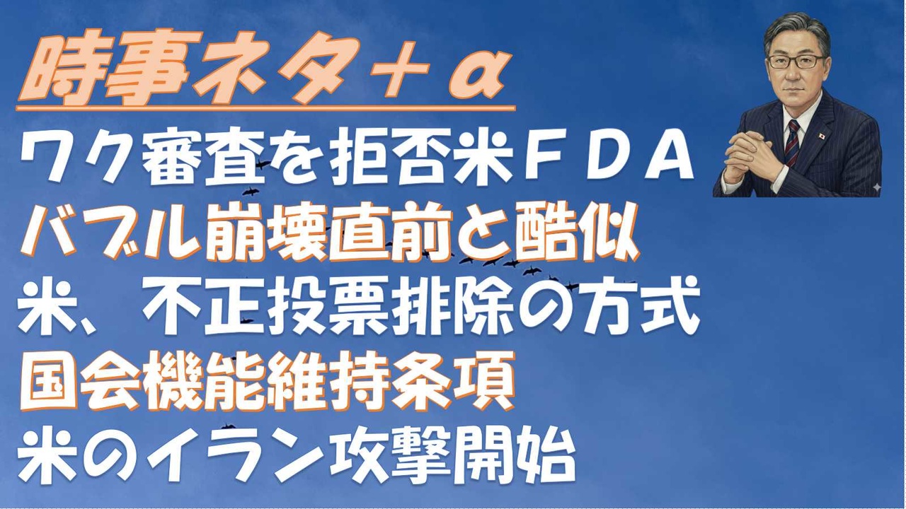 mRNAワクチン審査を拒否 米FDA、モデルナに対し<br><br>◆藤原直哉<br>「風力発電」稼げず、10年間に風車420基以上が廃止…迫る耐用年数・FIT期間過ぎ売電額半減<br><br>断言しますが、<br>日本株は1989年と同じ状況であり<br>まもなくバブル崩壊します。<br><br><br>日本が高市化した意味<br>2026年2月11日 田中 宇<br><br>全部話します<br>SAGAWA<br><br>チームみらい大躍進の件<br>ねずみ<br><br>SATORISM TV LIVE.220「選挙は分断」<br><br><br>【高市早苗】自民大勝に「莫大な広告費で金の力で勝っただけ」という低レベルな陰謀論が出てしまっている件について【政治ネタ】<br><br>田中角栄が「憲法9条」を盾にベトナム戦争への派兵要請を断っていた<br><br>ムサシが集計した500票の束に「バーコード」を貼って票集計してんの⁉️<br>→それ、別の候補者のバーコードにすり替えで500票を丸ごと操作可能じゃね⁉️<br><br>◆倉田真由美<br>アメリカは投票での不正を排除する方向へ向かった。<br><br>参政党・れいわ新撰組の支持者ら、それぞれ「チームみらいに票を盗まれた」と主張<br><br>◆根本良輔<br>本当に危険なのは、改憲に反対してきた議員が軒並み落選したことだ<br><br>緊急事態条項の名前が変更されています→国会機能維持条項<br><br><br>#根本良輔<br>#田中角栄<br>#憲法9条<br>#れいわ<br>#みらい<br>#SATORISM<br>#サガワ<br>#ねずみ<br>#不正選挙