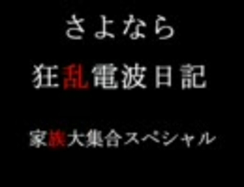 狂乱家族日記のネットラジオ 『進め!狂乱電波日記』(毎週金曜22:00~23:00 文化放送 超!A&G+にて生放送)のさよならスペシャル放送です(10月19日21:00~23:00放送)。パーソナリティ:藤村歩(乱崎凶華 役)佐藤利奈(乱崎月香 役)ゲスト:近藤孝行(乱崎凰火役)、藤田圭宣(乱崎銀夏役)、安元洋貴(乱崎帝架役)戸松遥 (乱崎千花 役) 花澤香菜 (乱崎優歌 役)広橋涼(乱崎雹霞 役) そして番組リスナー's 第26回→<a href="https://www.nicovideo.jp/watch/sm4749533" class="watch">sm4749533</a> 番組予算使い切った為にまさかの公園からの2時間生放送!そして今日は夜中のオリンピックです。最後の狂乱な宴を皆さん満足してください!!