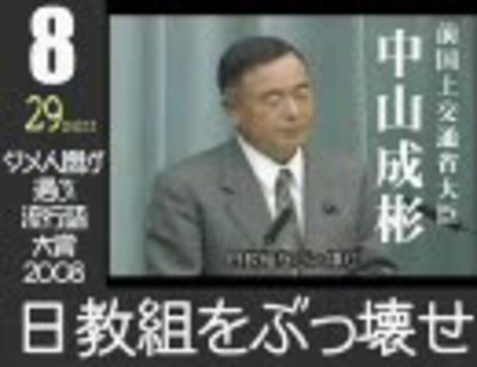 世間では、【グゥーbyエド】が【アラフォー】が流行語大賞ですが・・・ダメ人間はどんな流行語選ぶのか?<br /><br />使用動画 10位:<a href="https://www.nicovideo.jp/watch/nm4439760" class="watch">nm4439760</a> 8位:<a href="https://www.nicovideo.jp/watch/sm4767038" class="watch">sm4767038</a> 6位:<a href="https://www.nicovideo.jp/watch/sm4491155" class="watch">sm4491155</a><br /> 3位:<a href="https://www.nicovideo.jp/watch/sm4660100" class="watch">sm4660100</a> 2位:<a href="https://www.nicovideo.jp/watch/sm3250789" class="watch">sm3250789</a> 1位:<a href="https://www.nicovideo.jp/watch/sm5435767" class="watch">sm5435767</a><br /><br />ダメ協世論調査 第42回ダメ人間が流行語大賞2008<br />コレは、ダメ人間生活協同組合 <a href="http://homepage1.nifty.com/ima-dame/" target="_blank" rel="noopener nofollow">http://homepage1.nifty.com/ima-dame/</a> の投票結果です<br /><br />ダメ協世論調査リスト:<a href="https://www.nicovideo.jp/mylist/9057157" target="_blank" rel="noopener">mylist/9057157</a> 自作旅動画一覧:<a href="https://www.nicovideo.jp/mylist/8039032" target="_blank" rel="noopener">mylist/8039032</a><br /> 自作ダメ動画一覧:<a href="https://www.nicovideo.jp/mylist/4669671" target="_blank" rel="noopener">mylist/4669671</a> 自作レース・車系動画:<a href="https://www.nicovideo.jp/mylist/8855472" target="_blank" rel="noopener">mylist/8855472</a>