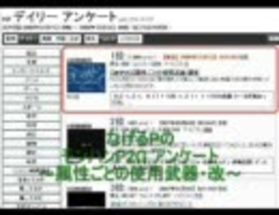 | 番号 | 総合順位 | ポイント | ジャンル順位 | カテゴリ | 再生順位 | 再生数 | コメント順位 | コメント数 | マイリスト順位 | マイリスト数 | いいね順位 | いいね数 |