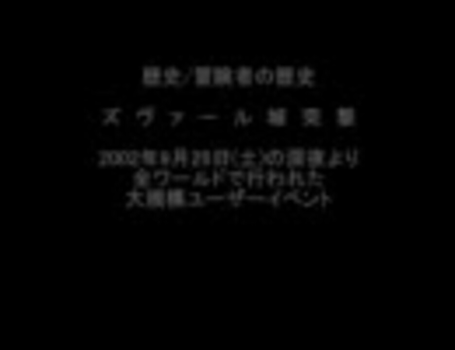 テストアップです。 <br /> FF11サービス開始初期のユーザーイベントをまとめてみました。<br /> <br /> 画質、編集、音質ともにグダグダです。<br /> 音楽にあわせて、カットのつなぎを考えてと思っていましたが無理!<br /> つなぎはめちゃくちゃ音楽のタイミングはボロボロ。<br /> 精進します。<br />音楽はこちらの曲をお借りいたしました⇒<a href="https://www.nicovideo.jp/watch/sm4944618" class="watch">sm4944618</a><br />後編はこちら⇒<a href="https://www.nicovideo.jp/watch/sm6981955" class="watch">sm6981955</a>