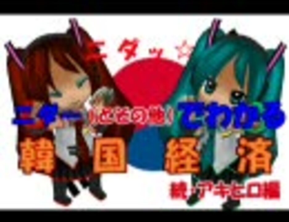 ようやく最終回になりました。全部がわかったところで替え歌を見直すと、より内容がわかるかもしれないです。今まで作ったものはこちら⇒<a href="https://www.nicovideo.jp/mylist/4500728" target="_blank" rel="noopener">mylist/4500728</a> ■今回は替え歌ではありません。だからフィルターもありません。■AAでわかる韓国経済の作者さんの続編を動画にしてみました。■編集の都合上、少しだけ削った内容があります。■第1回「おさらい編」⇒<a href="https://www.nicovideo.jp/watch/sm6961719" class="watch">sm6961719</a> 第2回「ノムヒョン編」⇒<a href="https://www.nicovideo.jp/watch/sm6961740" class="watch">sm6961740</a> 第3回「アキヒロ編」⇒・・・<a href="https://www.nicovideo.jp/watch/sm7001446" class="watch">sm7001446</a>■話がわかったところでメドレー■次回作の予告があるかもしれません・・・あゆPのプロフィールにて⇒<a href="https://www.nicovideo.jp/user/3349387" target="_blank" rel="noopener">user/3349387</a>