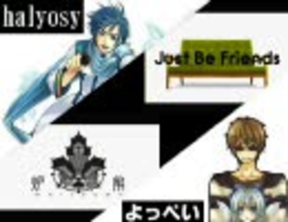 ども、m2h2です。<br /><br />今回は、『けいと』さんがうpした。<br />『「炉心融解」と「Just Be Friends」を全力で合わせてみた』(<a href="https://www.nicovideo.jp/watch/sm7578928" class="watch">sm7578928</a>)を素に<br />halyosyさんとよっぺいさんを合わせてみました。<br /><br /> よっぺいさんアバ元、他にも素敵絵がいっぱいです→ <a href="https://www.nicovideo.jp/watch/nm7498909" class="watch">nm7498909</a><br /><br /> 詰め合わせzip置いときます↓<br /> <a href="http://www1.axfc.net/uploader/O/so/89375.zip" target="_blank" rel="noopener nofollow">http://www1.axfc.net/uploader/O/so/89375.zip</a><br /><br />【各素材動画】<br />炉心融解→ <a href="https://www.nicovideo.jp/watch/sm5602903" class="watch">sm5602903</a><br />Just Be Friends→ <a href="https://www.nicovideo.jp/watch/sm7528841" class="watch">sm7528841</a><br />炉心融解 ver.よっぺい→ <a href="https://www.nicovideo.jp/watch/sm6547162" class="watch">sm6547162</a><br />Just Be Friends ver.halyosy→ <a href="https://www.nicovideo.jp/watch/sm7564289" class="watch">sm7564289</a><br /><br /> 1/11 YOPPEI de マイムマイム→ <a href="https://www.nicovideo.jp/watch/sm9350428" class="watch">sm9350428</a><br /><br />m2h2の創作履歴→ <a href="https://www.nicovideo.jp/mylist/12302932" target="_blank" rel="noopener">mylist/12302932</a><br />
