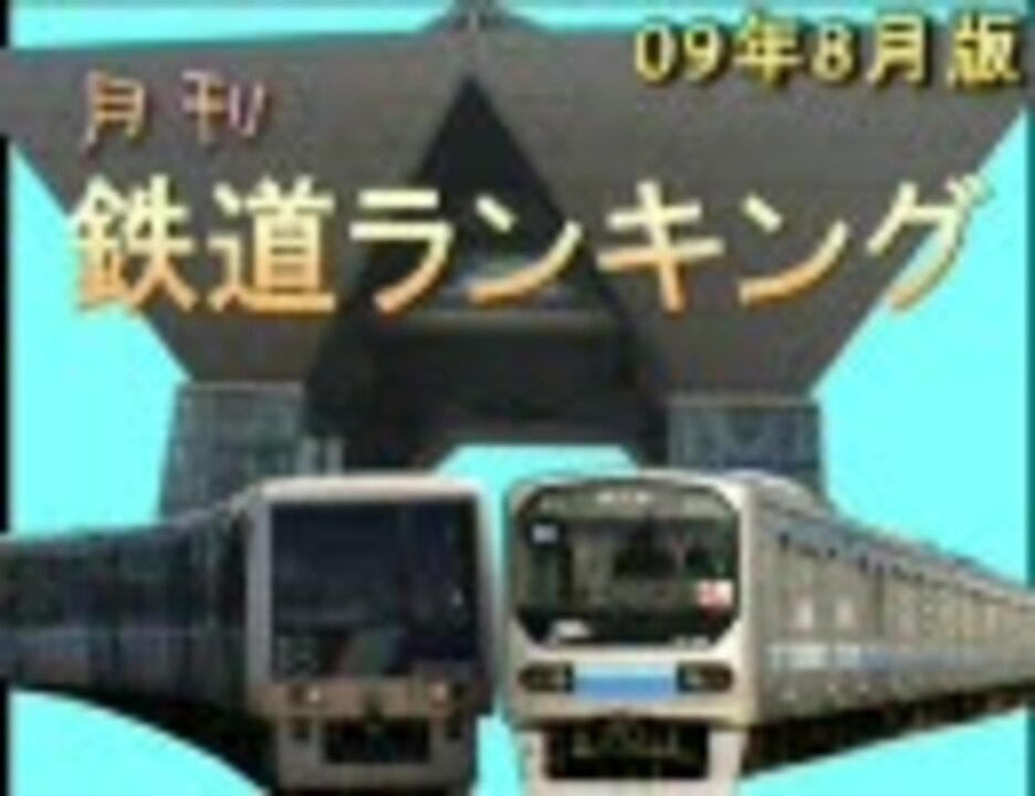 ■8月に投稿された鉄道動画のランキング、お陰様で10本目です。今回のテーマは、大宮→コミケ会場まで電車で向かってみたです(らき☆すた風にw<br />■削除動画や再うp、比較動画はランキングに含んでいません。<br />■ポイントの集計には、ニコニコランキングメーカーを利用しました。<br />■OP/間→<a href="https://www.nicovideo.jp/watch/sm335830" class="watch">sm335830</a>、ED→<a href="https://www.nicovideo.jp/watch/nm7802124" class="watch">nm7802124</a><br />■ランキングに入った動画→<a href="https://www.nicovideo.jp/mylist/14595274" target="_blank" rel="noopener">mylist/14595274</a><br />■鉄ランのマイリスト→<a href="https://www.nicovideo.jp/mylist/14768694" target="_blank" rel="noopener">mylist/14768694</a>、前→<a href="https://www.nicovideo.jp/watch/sm7940745" class="watch">sm7940745</a>、次→<a href="https://www.nicovideo.jp/watch/sm8491884" class="watch">sm8491884</a><br />■ブログ→<a href="http://niconiconama.blog42.fc2.com/" target="_blank" rel="noopener nofollow">http://niconiconama.blog42.fc2.com/</a><br /><br />■忙しい人用!?→<a href="https://www.nicovideo.jp/watch/sm8191079" class="watch">sm8191079</a>