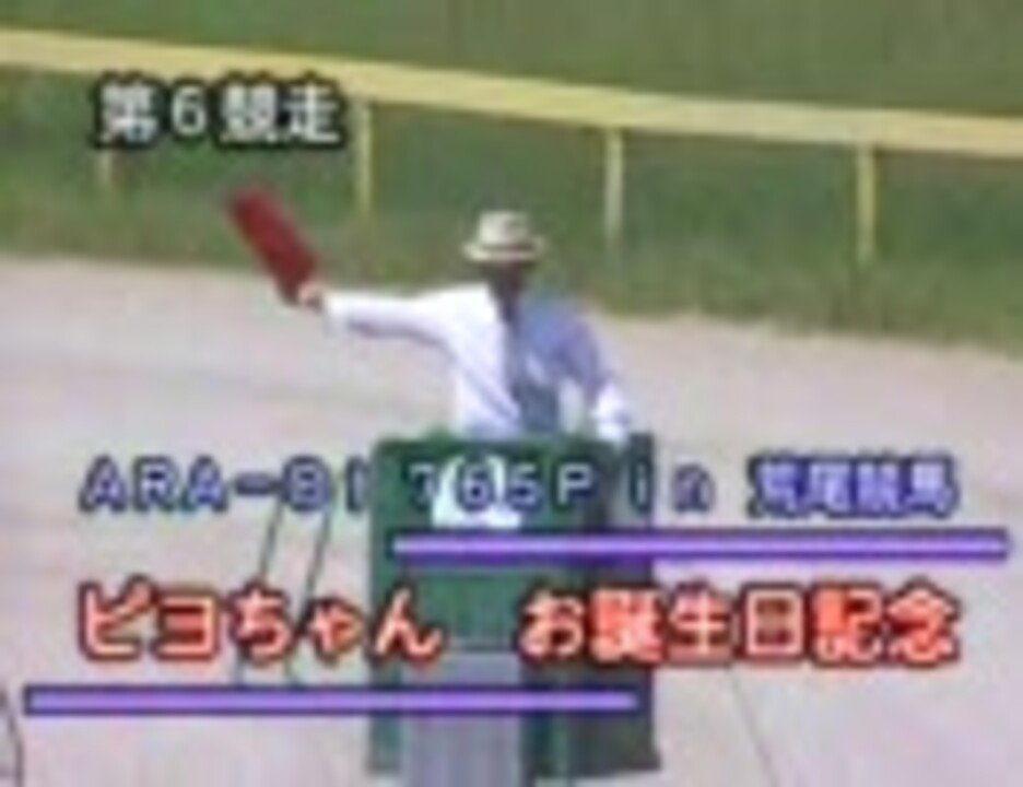 荒尾競馬 2009年9月9日(水) 大事なレースなので2回(ry ①第6競走:ピヨちゃんお誕生日記念 ②第8競走:音無小鳥誕生日記念「花」 もはや常連となった荒尾での開催です。 他の冠レース: 三浦あずさ永遠の二十歳記念 <a href="https://www.nicovideo.jp/watch/sm4016354" class="watch">sm4016354</a> 星井美希誕生日特別 <a href="https://www.nicovideo.jp/watch/sm5329798" class="watch">sm5329798</a> 萩原雪歩記念 <a href="https://www.nicovideo.jp/watch/sm5633655" class="watch">sm5633655</a> 水瀬伊織様お誕生日記念 <a href="https://www.nicovideo.jp/watch/sm6954636" class="watch">sm6954636</a> あずさ誕生日記念2009 <a href="https://www.nicovideo.jp/watch/sm7669932" class="watch">sm7669932</a> アイマス4周年記念 <a href="https://www.nicovideo.jp/watch/sm7749723" class="watch">sm7749723</a> ◆菊地真 生誕関連(荒尾 <a href="https://www.nicovideo.jp/watch/sm8061236" class="watch">sm8061236</a>:名古屋 <a href="https://www.nicovideo.jp/watch/sm8069365" class="watch">sm8069365</a>:浜名湖 <a href="https://www.nicovideo.jp/watch/sm8076683" class="watch">sm8076683</a>) 我那覇ヒビキさん特別 <a href="https://www.nicovideo.jp/watch/sm8474927" class="watch">sm8474927</a>