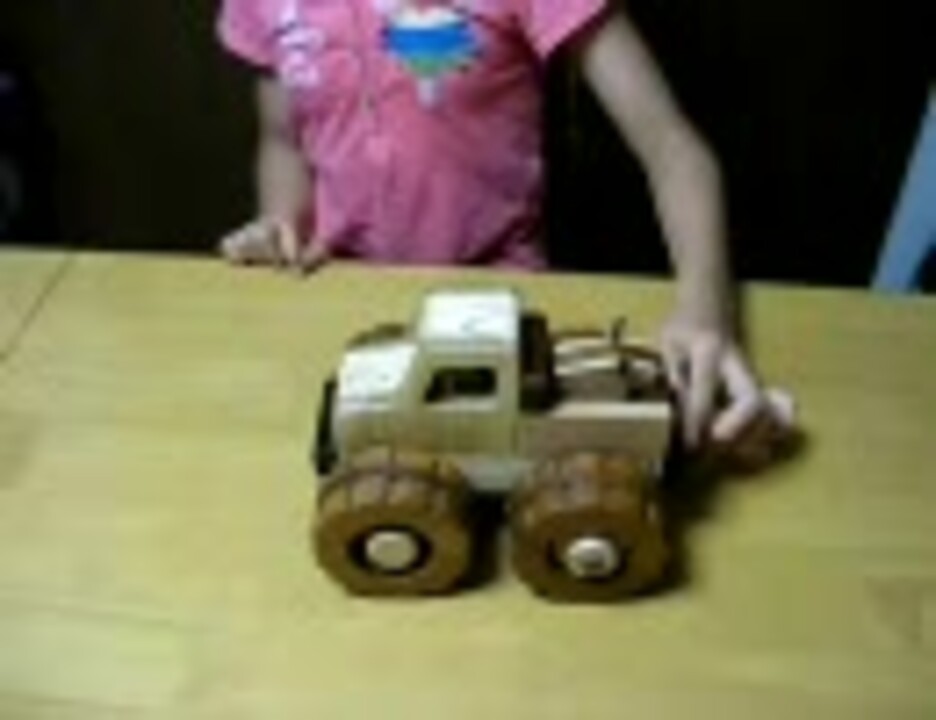 娘の誕生日にプレゼントのために創ったオリジナルのおもちゃです。<br><br>ある晴れた昼下がり市場へつづく道<br>トラックに積み込まれた子牛は 市場へは行きたくありません。<br>「そうだ、逃げよう!」<br>そしてジャンプ!無事逃げ出しました。<br>しかし、バックして戻ってきたトラックにまた乗せられてしまいます。<br>子牛はまたジャンプして逃げ出します。<br>トラックはバックし て・・・・<br>子牛はまたジャンプ!<br>人と子牛の根競べ(こんくらべ) です!!<br>----------------------------------------------------------------------------<br />木の歯車工房 <a href="https://www.nicovideo.jp/mylist/13971141" target="_blank" rel="noopener">mylist/13971141</a> の他の作品<br>新作! 歯車機巧 木のホイールローダー <a href="https://www.nicovideo.jp/watch/sm42085695" class="watch">sm42085695</a><br>【 機巧(きこう・からくり) 】<br>トンボの機巧 -みなもに描かれる波の紋ー <a href="https://www.nicovideo.jp/watch/sm39663200" class="watch">sm39663200</a> <br>ノコギリクワガタvsカブトムシ <a href="https://www.nicovideo.jp/watch/sm22680912" class="watch">sm22680912</a><br>歯車機巧樹~小鳥と芋虫のだるまさんがころんだ~ <a href="https://www.nicovideo.jp/watch/sm28141985" class="watch">sm28141985</a><br>木の四足歩行ロボット2010 <a href="https://www.nicovideo.jp/watch/sm14032541" class="watch">sm14032541</a><br>木のトラックDONA DONA <a href="https://www.nicovideo.jp/watch/sm8402215" class="watch">sm8402215</a><br>【 ゴム銃・トイ銃 】<br>Wooden Rubber Band Gun『 GEAR MONSTER 』 <a href="https://www.nicovideo.jp/watch/sm37030784" class="watch">sm37030784</a><br>RUBBER BAND GUN『LARUS』&『PICUS』 <a href="https://www.nicovideo.jp/watch/sm39610064" class="watch">sm39610064</a><br>Twiga(トゥイガ)単射連射切替ゴム銃 <a href="https://www.nicovideo.jp/watch/sm36978130" class="watch">sm36978130</a><br>木の回転式6連発ゴム銃 <a href="https://www.nicovideo.jp/watch/sm18998498" class="watch">sm18998498</a><br>木の板バネ銃2010 <a href="https://www.nicovideo.jp/watch/sm18997434" class="watch">sm18997434</a><br>【 操縦系 】<br>木のクレーン車2006 <a href="https://www.nicovideo.jp/watch/sm7760830" class="watch">sm7760830</a><br>木のロボットアーム <a href="https://www.nicovideo.jp/watch/sm8781130" class="watch">sm8781130</a><br>木のドーザショベル <a href="https://www.nicovideo.jp/watch/sm8675371" class="watch">sm8675371</a><br>木のフォークリフト(チェーンタイプ) <a href="https://www.nicovideo.jp/watch/sm7867946" class="watch">sm7867946</a><br>木のフォークリフト(カムタイプ) <a href="https://www.nicovideo.jp/watch/sm7868349" class="watch">sm7868349</a><br>