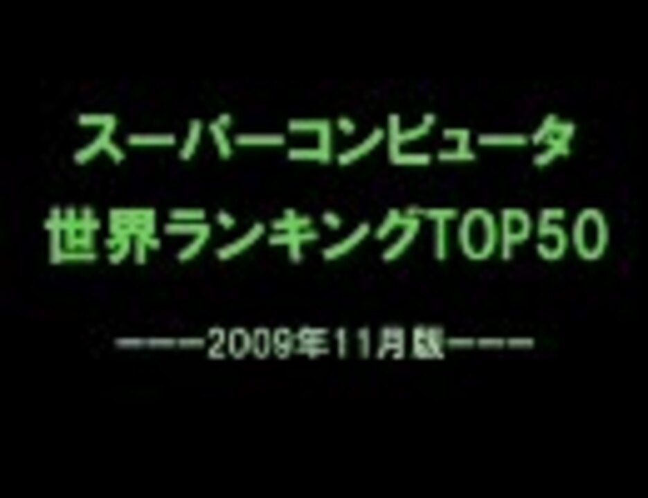 民主党の事業仕分けで注目を集めるスーパーコンピューター(通称スパコン)。<br />その最新世界ランキングのトップ50を動画化してみました。<br /><a href="https://www.nicovideo.jp/mylist/10552293" target="_blank" rel="noopener">mylist/10552293</a>