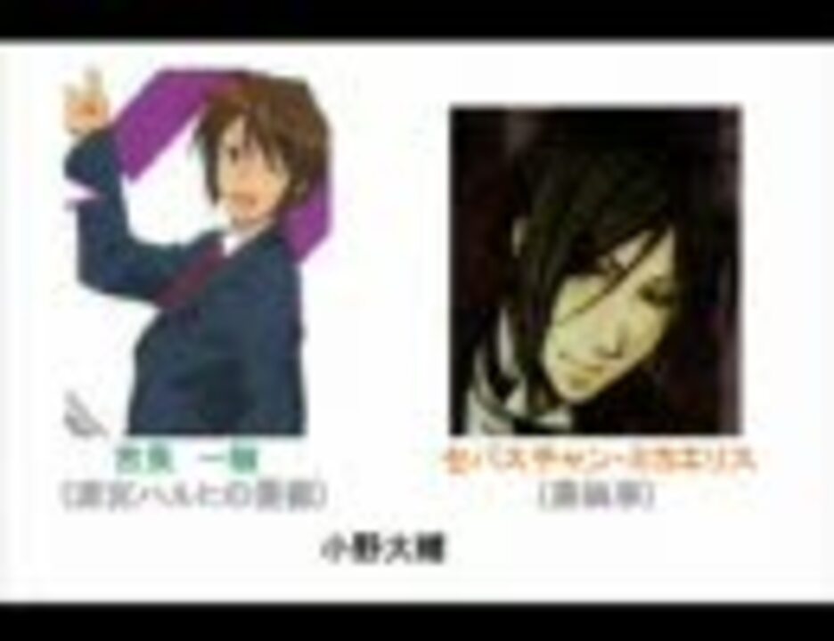 あなたはどちらのキャラが好み?最後には豪華声優(銀魂声優)からの甘いヴォイス(ボイス)もあるから最後までお見逃しなく!中井和哉→子安武人→鈴村健一→杉田智和【ヘッドフォン推薦】 <br />☆キャラ崩壊しています☆一部、想像によっては・・・なところあり。☆偏りあります<br />以下、注意書きです動画の内容の中に、声優の名前を間違えている部分がありましたので、ここで訂正させていただきます。キョンと坂田銀時の声優…×森川智之 ○杉田智和桂小太郎…×ヅラップ ○カツラップ皆様には大変ご迷惑をおかけいたしました。BGM使用・・・<a href="https://www.nicovideo.jp/watch/sm975673" class="watch">sm975673</a> <a href="http://www.youtube.com/watch?v=v9krTo5lgD8" target="_blank" rel="noopener nofollow">http://www.youtube.com/watch?v=v9krTo5lgD8</a> <a href="http://www.youtube.com/watch?v=XGqdLGYEHdo" target="_blank" rel="noopener nofollow">http://www.youtube.com/watch?v=XGqdLGYEHdo</a> ボイス使用・・・<a href="https://www.nicovideo.jp/watch/sm6490291" class="watch">sm6490291</a> <a href="https://www.nicovideo.jp/watch/sm2684372" class="watch">sm2684372</a> <a href="https://www.nicovideo.jp/watch/sm7324064" class="watch">sm7324064</a> <a href="https://www.nicovideo.jp/watch/sm6604812" class="watch">sm6604812</a> 第二弾はこちら→<a href="https://www.nicovideo.jp/watch/sm16868059" class="watch">sm16868059</a>