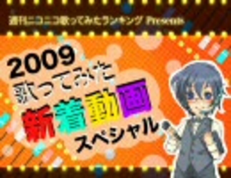 2009歌ってみた新着動画ランキング PART1■集計期間:<b>2008年12月25日5時~2009年12月25日5時</b><br />■集計方法:再生数+コメント数×補正値+マイリスト登録数×50(補正値…ポイント合計に占める再生数+マイリスト数の割合)<br />■集計対象:集計期間に投稿された2009年12月25日5時の時点で歌ってみたタグが付いている視聴可能な動画<br />──────<br />■掲載動画一覧は大百科へ移動しました。<br />■第2部:<a href="https://www.nicovideo.jp/watch/sm9248757" class="watch">sm9248757</a> 第3部:<a href="https://www.nicovideo.jp/watch/sm9249040" class="watch">sm9249040</a> 第4部:<a href="https://www.nicovideo.jp/watch/sm9249407" class="watch">sm9249407</a><br /><br />■週刊#60:<a href="https://www.nicovideo.jp/watch/sm9227407" class="watch">sm9227407</a><br />■ランキング作者が選ぶ「この動画がすごい!2009」<a href="https://www.nicovideo.jp/watch/sm9247971" class="watch">sm9247971</a>に参加しました。