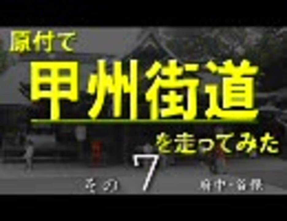 その7は是政-八幡宿-府中-本宿-西府-谷保です。 府中市から国立市に入ります。武蔵総社六所宮(大国魂神社)と高安寺に寄り道します<br />初期の甲州街道のルートの変遷や年代、多摩川の流路の変化には諸説ありますが、その中の一説を採らせていただきました。<br /><br />走行ルート → <a href="http://altcva.main.jp/nicomap/?id=sm9367756" target="_blank" rel="noopener nofollow">http://altcva.main.jp/nicomap/?id=sm9367756</a><br />関連動画は国道20号線のタグから飛んで下さい <br />使用させていただいたBGM → <a href="https://www.nicovideo.jp/watch/sm6860480" class="watch">sm6860480</a> <br />Zoome版 → <a href="http://zoome.jp/umegold/diary/37/" target="_blank" rel="noopener nofollow">http://zoome.jp/umegold/diary/37/</a> <br /><br />その8 → <a href="https://www.nicovideo.jp/watch/sm9430117" class="watch">sm9430117</a> <br />マイリスト → <a href="https://www.nicovideo.jp/mylist/4279147" target="_blank" rel="noopener">mylist/4279147</a>