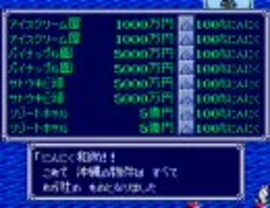久しぶりの投稿動画です。桃太郎電鉄DXで1年目でどこまで収益が増やせるか頑張ってみました。調整が甘い点はご容赦ください(遅くても倍速コメとかやめてください)。途中までは<a href="https://www.nicovideo.jp/watch/sm6429336" class="watch">sm6429336</a>と同じです。関係無いけど『キャピタリズム~マネーは踊る~』見に行きてえ。 追記:1198回 作ったもの⇒<a href="https://www.nicovideo.jp/mylist/10851702" target="_blank" rel="noopener">mylist/10851702</a> 追記:まさかランキング入りとは・・・。みなさんありがとうございます。 さらに追記:記録更新しました⇒<a href="https://www.nicovideo.jp/watch/sm9623922" class="watch">sm9623922</a> Ⅲでも岡山行ってきました⇒<a href="https://www.nicovideo.jp/watch/sm9806800" class="watch">sm9806800</a> もっと追記:さらに記録更新しました⇒<a href="https://www.nicovideo.jp/watch/sm9809145" class="watch">sm9809145</a>